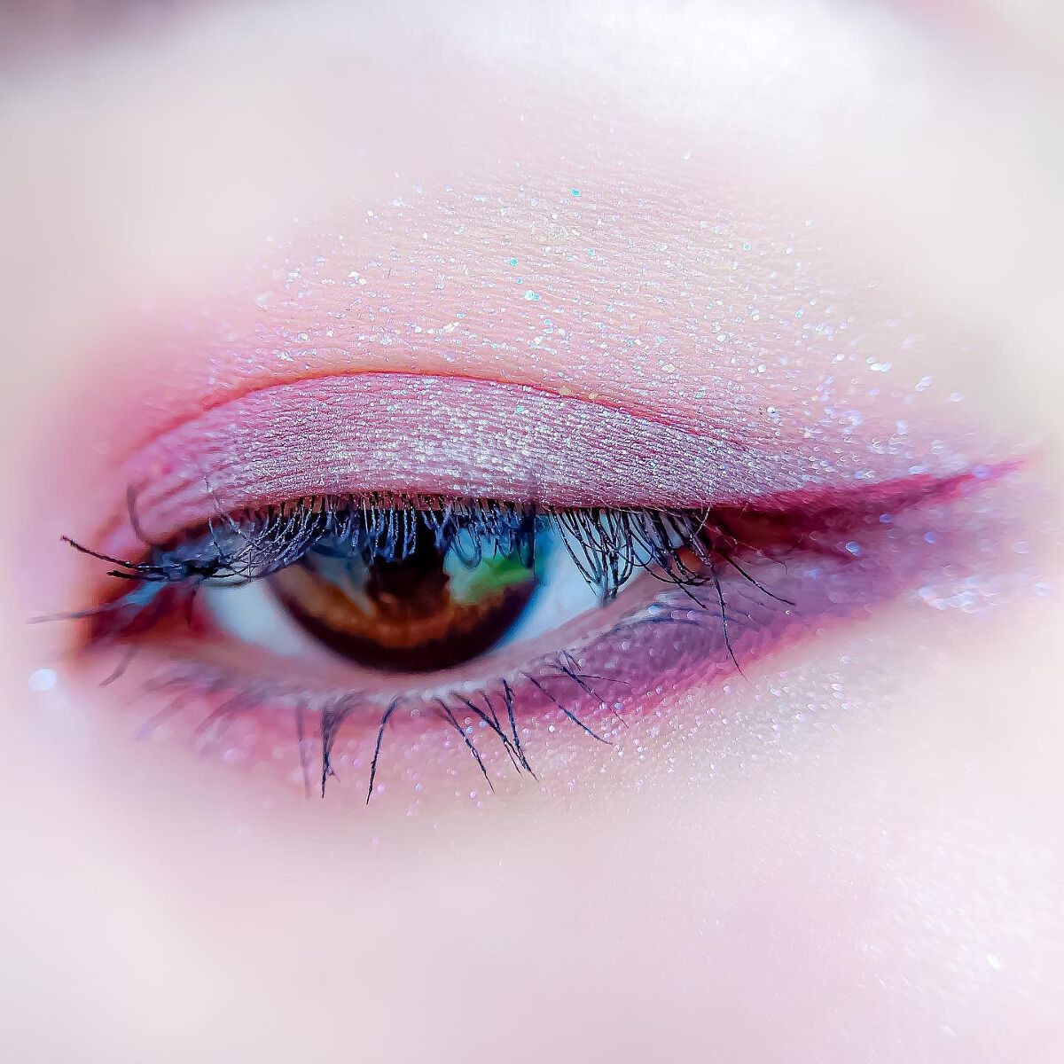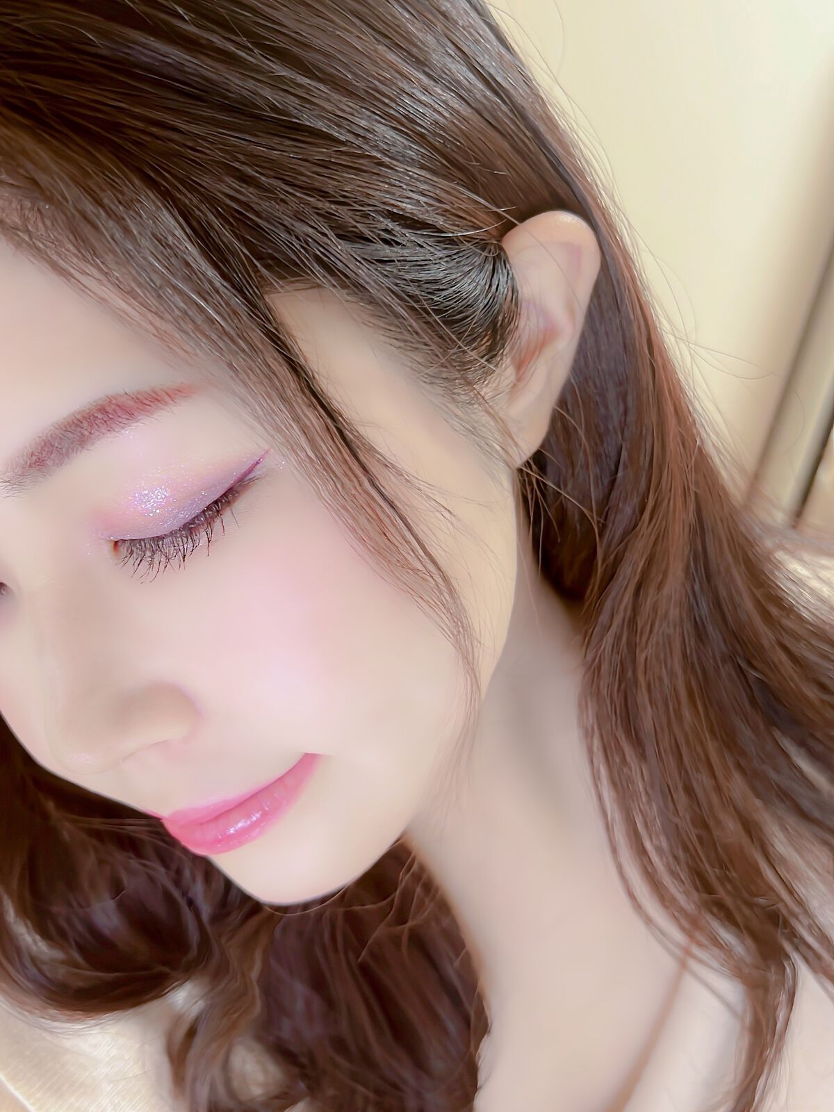 ピンクにグレージュも良いですね👌💗 今日は可愛らしい感じにしてみました💕 上下瞼黒目〜目頭側にラメを塗ってキラキラさせております🤩 目尻はマットのピンクを濃いめに重ねて💗 グレージュのアイライナーと相性◎