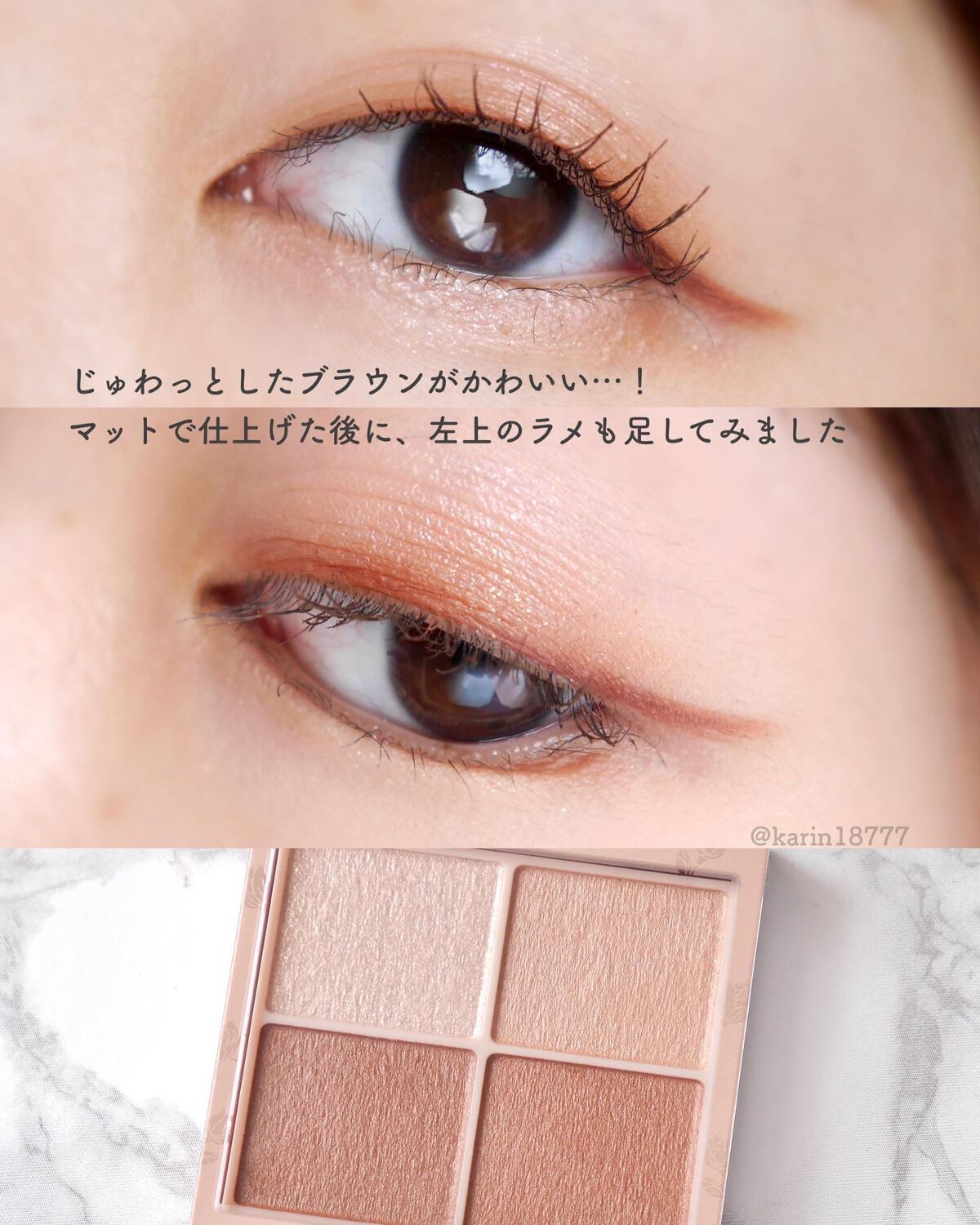 透明感溢れる4色構成のアイシャドウが肌なじみが良く艶っとした仕上がりで使うとはまってしまいます😍♥️♥️ お値段も¥825とお試ししやすい価格になっているので是非ぜひcheckしてみてくださいね!!😌 透けるラメ×透けるマットの組み合わせがとにかく可愛くてオシャレで1度使うと一軍アイシャドウの仲間入りになります✨✨