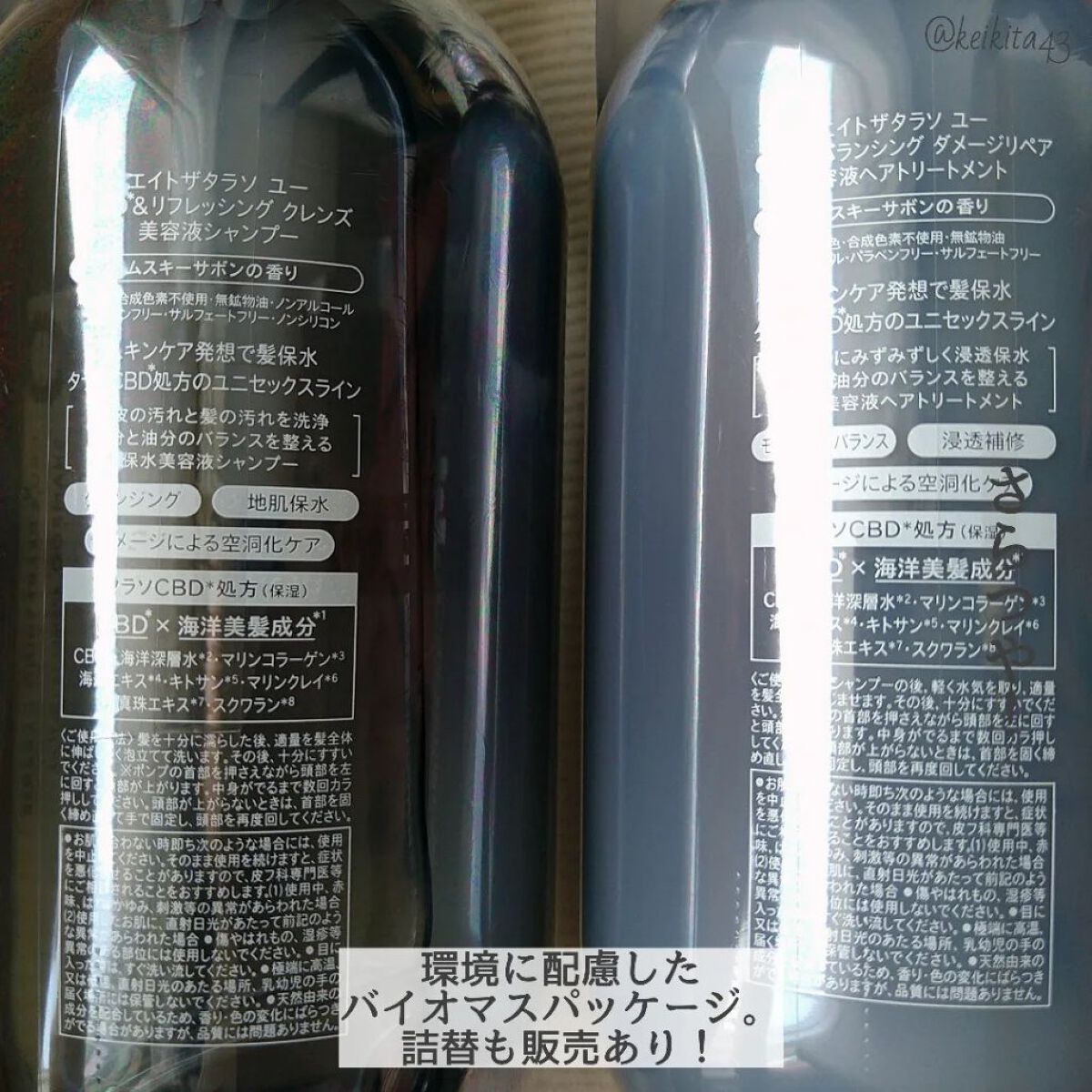 エイトザタラソユー💙CBD&リフレッシングクレンズ美容液シャンプー475mlCBD&バランシングダメージリペア美容液ヘアトリートメント475mlムスキーサボンの香り2022年に発売されてから、どのシャンプーにも浮気せずにずっと使い続けてるこの...