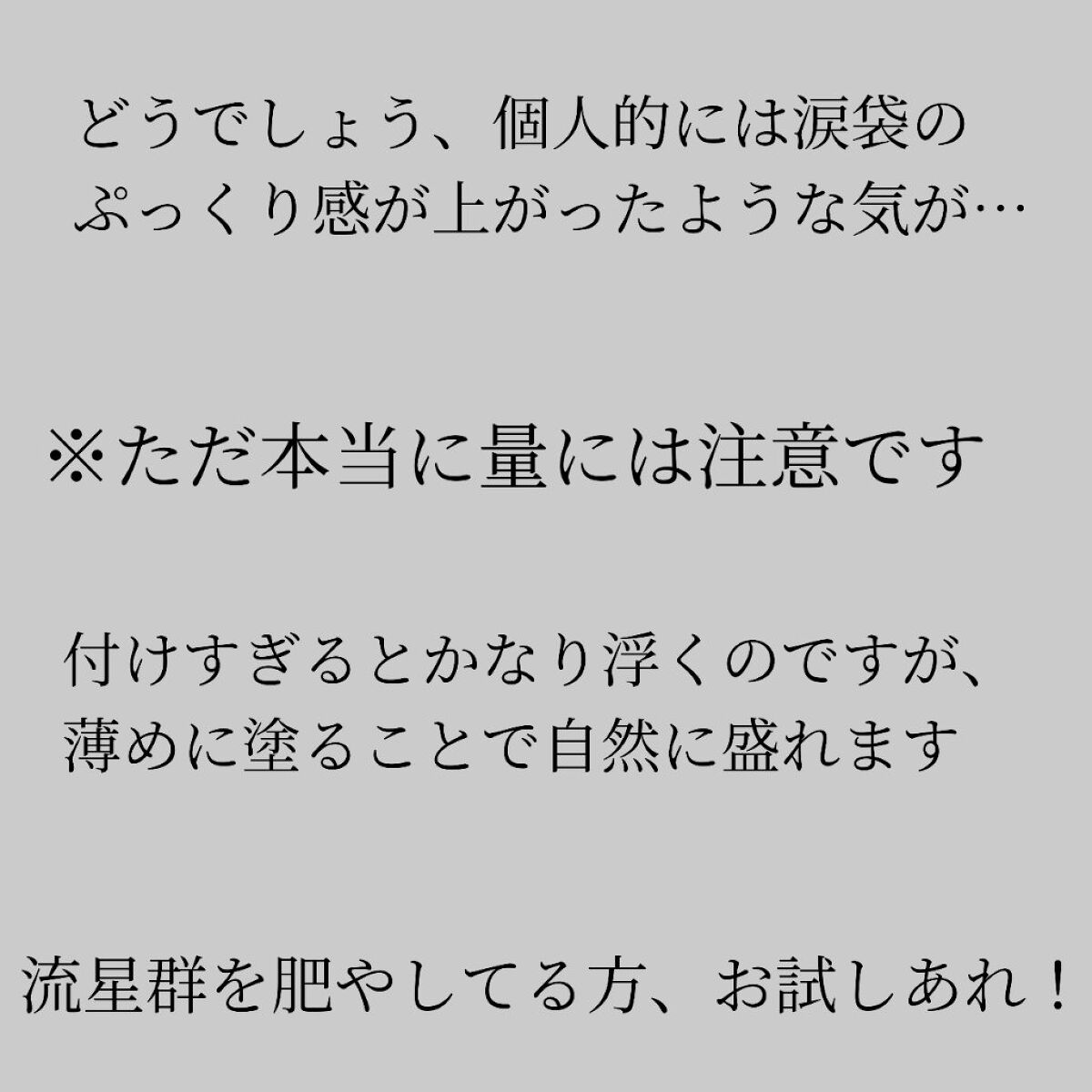 繊維が入っていてサッと塗るだけでめちゃくちゃ伸びる! これ、下地??ってくらいに伸びます笑 その後に、マスカラをつけても繊維が落ちることもなくキープ! 長さとボリュームの両方欲しい方に特におすすめ! まつ毛のバサバサ感があまり好きじゃなく自然にロングしたい方には向いてない!