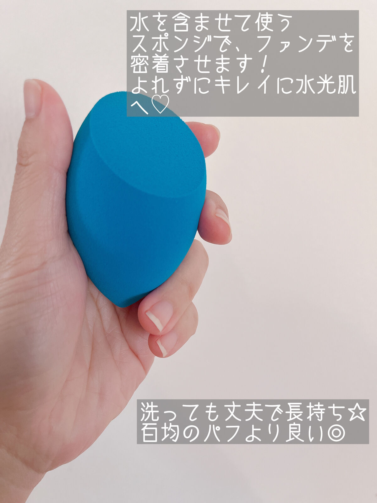 - 水分を含んだスポンジで、水光肌を簡単に実現。 なめらかでピタッとした密着感。 繊細なカッティングでテクニック要らずできれいな仕上がりへ。
