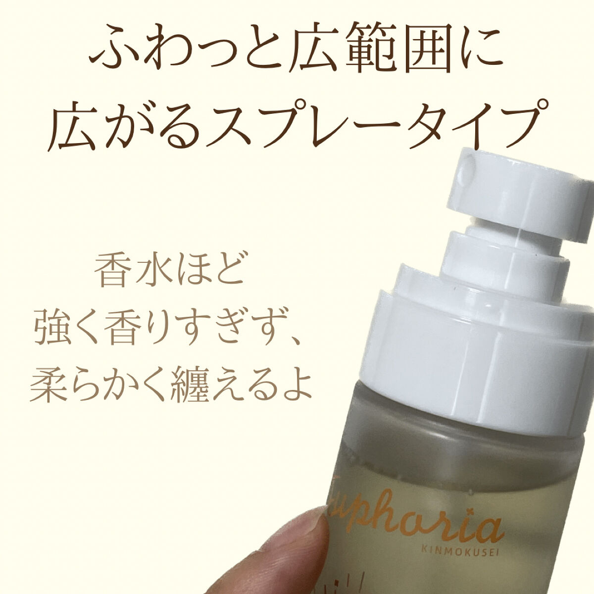 - 金木犀の香りの全身に使えるマルチミスト。香りだけでなく、保湿成分配合で、お肌と髪のうるおいを守ります。ヘアコロン・ヘアミスト・リフレッシュミストやボディミストとしてお使いいただけます。朝…傷んだ髪にも素早く浸透し、うるおいを守ります。ドライヤーの熱から髪を守る働きもあるため、寝癖直しにぴったりです。日中のお出かけ時…乾燥が気になるときや、香りをまといたいときにスプレーすると、やさしいキンモクセイの香りが漂って肌や髪がうるおいます。夜…金木犀の香りに包まれるリラックスタイムを・・おやすみ前にボディミストとしてお使いいただくのもおすすめです。