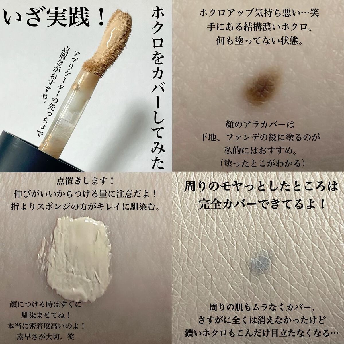 肌悩みをしっかり隠すハイカバーコンシーラー🌟 とにかくこのコンシーラーは密着力がすごくて 塗った時はなめらかなのに馴染ませるとお肌にしっかりフィットしてくれてヨレにくい‼︎ 汗、水、皮脂にも強くて落ちにくい。01ライトベージュを使用していますが、明るすぎず程よい色味で肌馴染みがいい◎ 塗ったらすぐスポンジ等で馴染ませるのがポイントです。質感はマットめです。塗る前に肌の保湿は必要だと思う😌