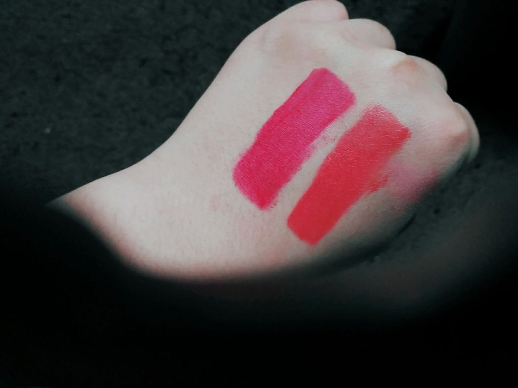 キャンドゥに寄った時に、気になっていたので購入してみました。私が購入したのは、ローズピンク、オペラレッド、ガーネットです。どれもすごく発色がよくてビックリしました!ただ粉リップなの?ってくらいマットなテクスチャーなので、乾燥してしまいます😣下...