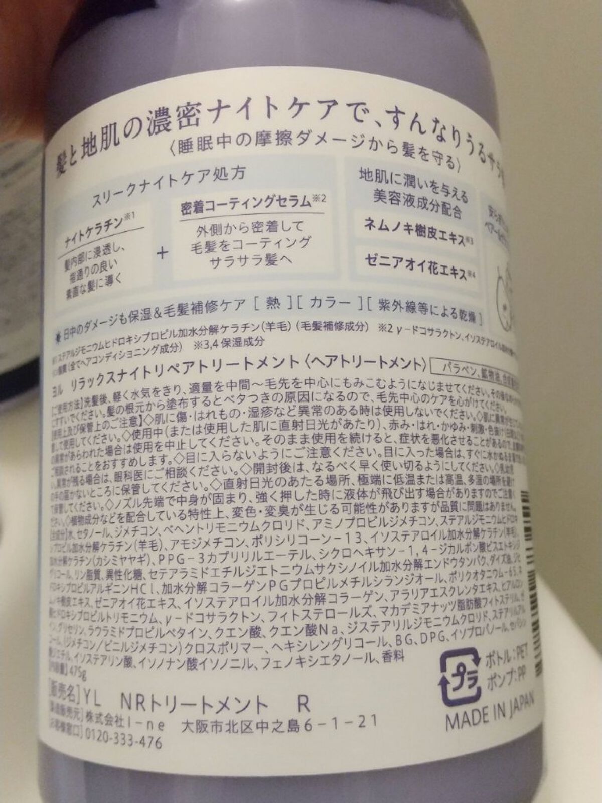 - 睡眠中の摩擦ダメージから髪を守る。髪と地肌の濃密ナイトケアで、すんなりうるサラ髪へ。安らぎたい夜に、ペアー&ゼラニウムの香り。