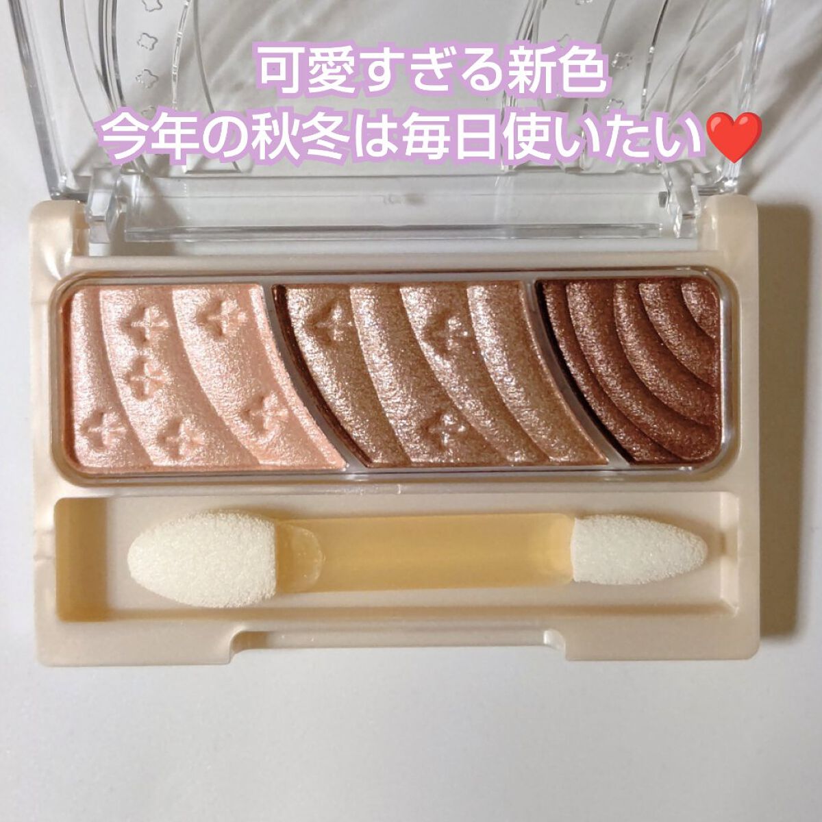 - 3色で簡単に明るく大きな目元に。 しっとり感触のアイシャドウ。 くすみを飛ばす明るさベース、ひとえ・奥二重の方でも幅広く塗れる肌なじみの良い中間色、 濃密高発色の締め色が目の輪郭を強調し大きな目元に。 微細パール配合でくすみを飛ばし、明るい目元へ。
