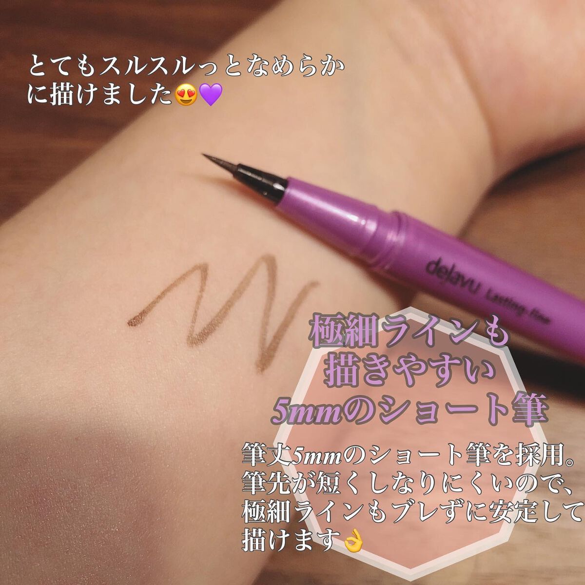 💜dejavuラスティンファインEショート筆リキッドミディアムブラウン💜筆先が“5mmのショート筆”で、筆が長すぎずしなりにくいため、安定して極細ラインが描けるよう設計されていてブレずに狙ったラインが描きやすいアイライナーです☺️皮脂・汗・涙...