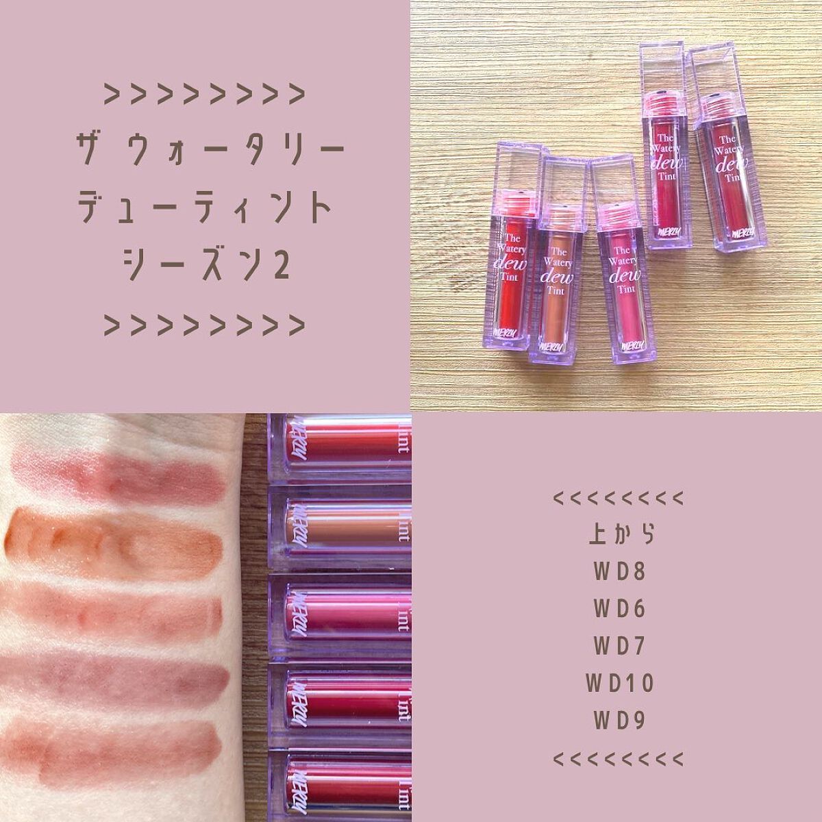 \程よいツヤ感🫧華やかな水光ティント💄/♡MERZYTheWaterydewTint色持ちがいいMERZYのちゅるんティント🩷ベタつかずさらっとしてるのに、ガラス玉みたいな光沢感がとっても綺麗🐰ひと塗りするだけでしっかり色づくし、ツヤツヤな唇...