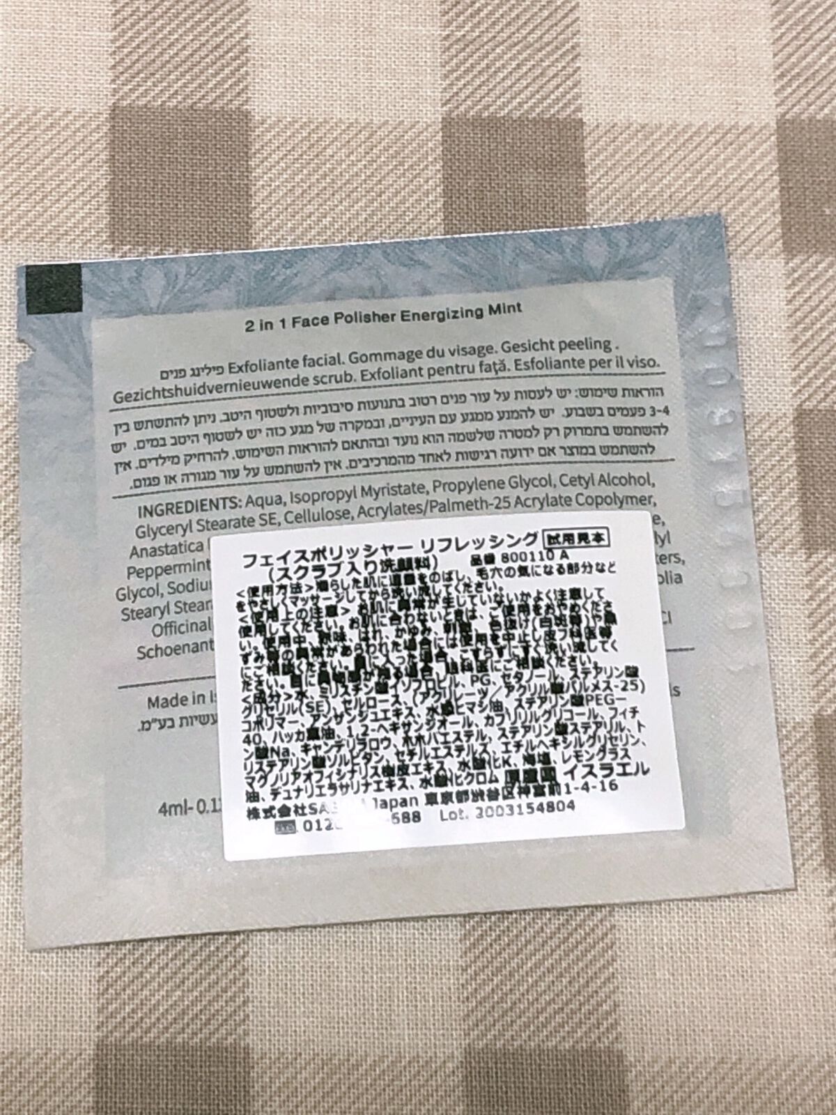 商品詳細情報SABON フェイスポリッシャー リフレッシング(ミント)