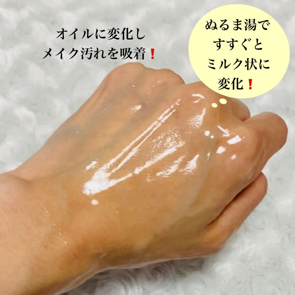 - 【使用方法】 手と肌が乾いた状態でお使いください。 ジェルを適量出し、肌の上でやさしく転がすようにメイク汚れとなじませ、オイル状に変わったら水またはぬるま湯で洗い流してください。 【使用上の注意 / 保存方法】 ◇肌に異常が生じていないかよく注意して使用してください。 ◇肌に傷・はれもの・湿疹など異常のある時は使用しないでください。 ◇使用中(または使用した肌に直射日光があたり)、赤み・はれ・かゆみ・刺激・色抜け(白斑など)や黒ずみなどの異常があらわれた場合は使用を中止してください。そのまま使用を続けると、症状を悪化させることがあるので、皮膚科専門医などにご相談されることをおすすめします。 ◇目に入らないようにご注意ください。目に入った場合は、すぐに水かぬるま湯で洗い流してください。異常が残る場合は、眼科医にご相談ください。 ◇開封後は、なるべく早く使い切るようにしてください。 ◇乳幼児の手の届かないところに保管してください。 ◇直射日光のあたる場所、極端に低温又は高温、多湿の場所を避けて保管してください。 ◇植物由来成分を配合しておりますので、色や臭いに若干差が生じる場合などがありますが品質には問題ありません。 ◇落ちにくいポイントメイクには専用リムーバーのご使用をおすすめします。 ◇使用後は必ずキャップをしっかりと閉めてください。