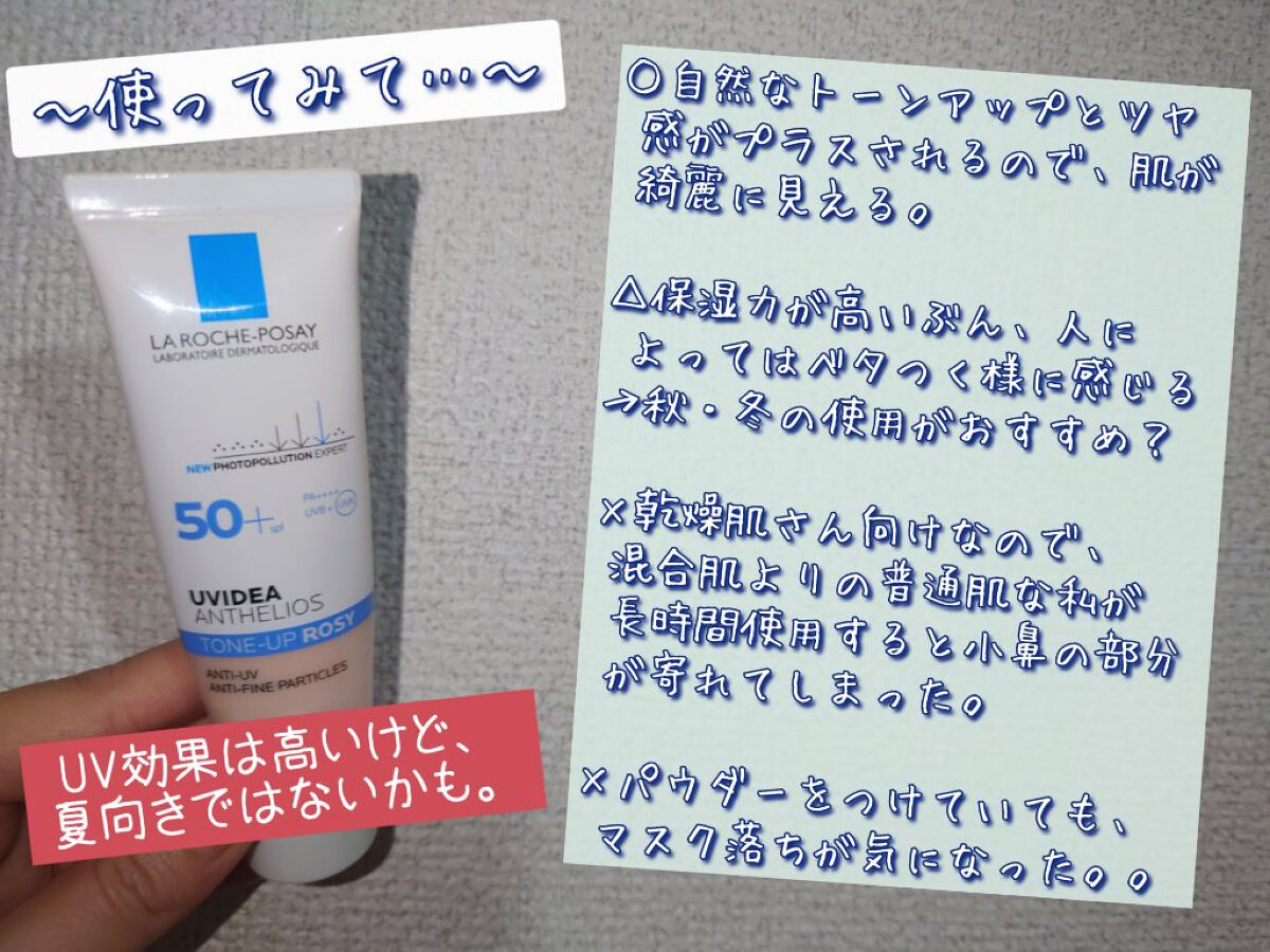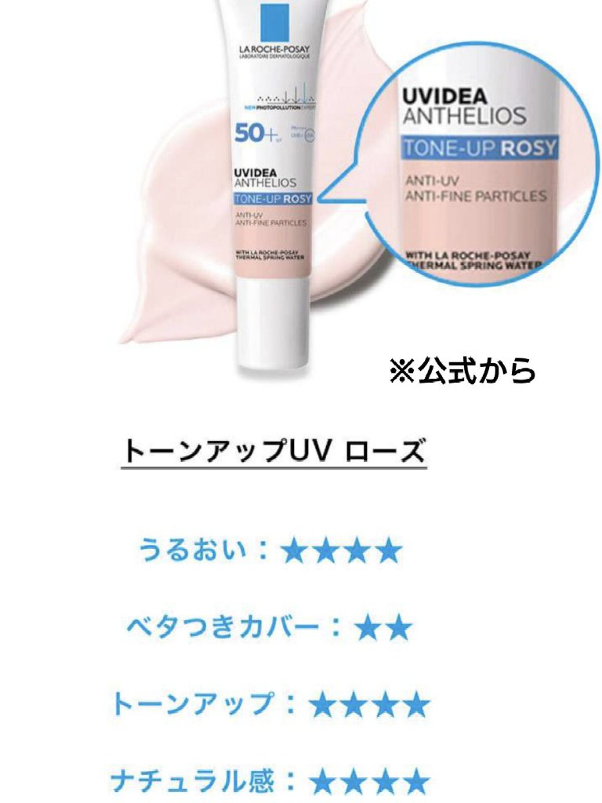 保湿力高めの下地が大好きなのでラロッシュポゼの下地はお気に入りでよく使います✨ かなりトーンアップします🤍自分は肌が黄ぐすみしやすいのでこれくらいトーンアップしてくれた方が時間がたった時にちょうどよくなります✨ 1番のお気に入りはローズです🌹肌から浮かない程よいトーンアップとほんのり血色感がよくなる所が大好きです🥰