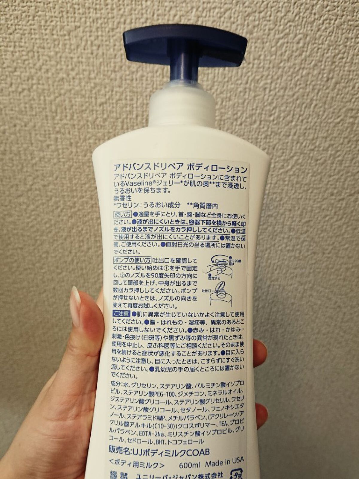 - うるおいたっぷりなのにベタつかない使い心地で、普通肌から乾燥肌、敏感肌の方の肌のうるおいを守ります。 Vaseline®ジェリー*配合 140年間守り続けてきたうるおい成分が肌の奥(角質層)まで浸透。 うるおった肌が一日中続きます。敏感肌の方にもお使いいただけます。 *ワセリン:うるおい成分 用途にあわせた2つのサイズ 200ml : 2014年の発売以来、大好評 400ml : お得な大容量サイズ。ポンプタイプで使いやすい