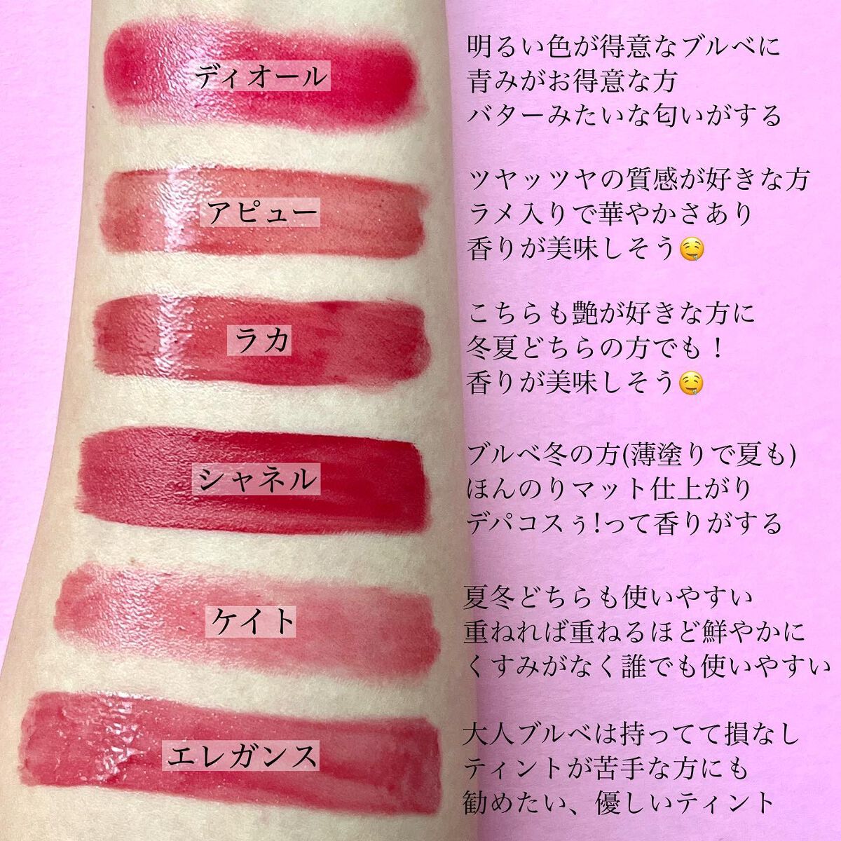 もーーーまずパッケージが可愛すぎるよね😢❤️❤️ 迷いなく全色買ってしまったよ…! 既存のジューシーラスティングティントに比べて ⚪︎サラッとしたリキッド ⚪︎やや薄づきな発色⚪︎艶々? 個人的にはロムアンドでは 最近こそ出るようになったけど ブルベ向きのカラー(特にサマー)でドンピシャが あんまり無いなあと思っていたので、 今回とっっても5〜8番が可愛くて ひじょーーーーーーに!満足しております💪❤️❤️