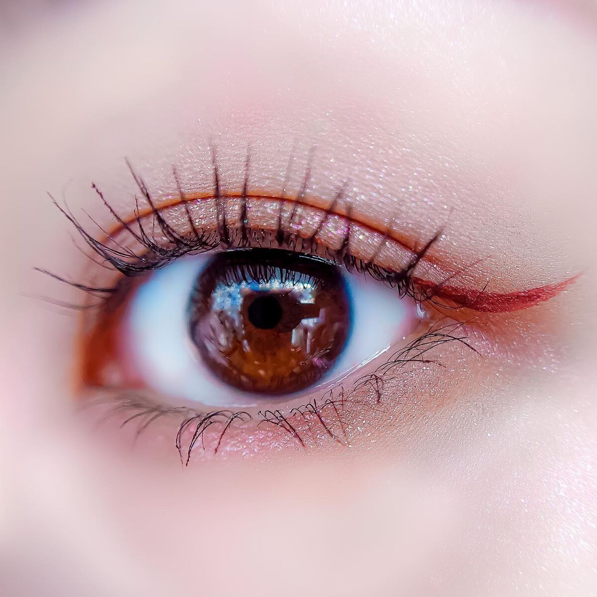 ピンクにグレージュも良いですね👌💗 今日は可愛らしい感じにしてみました💕 上下瞼黒目〜目頭側にラメを塗ってキラキラさせております🤩 目尻はマットのピンクを濃いめに重ねて💗 グレージュのアイライナーと相性◎