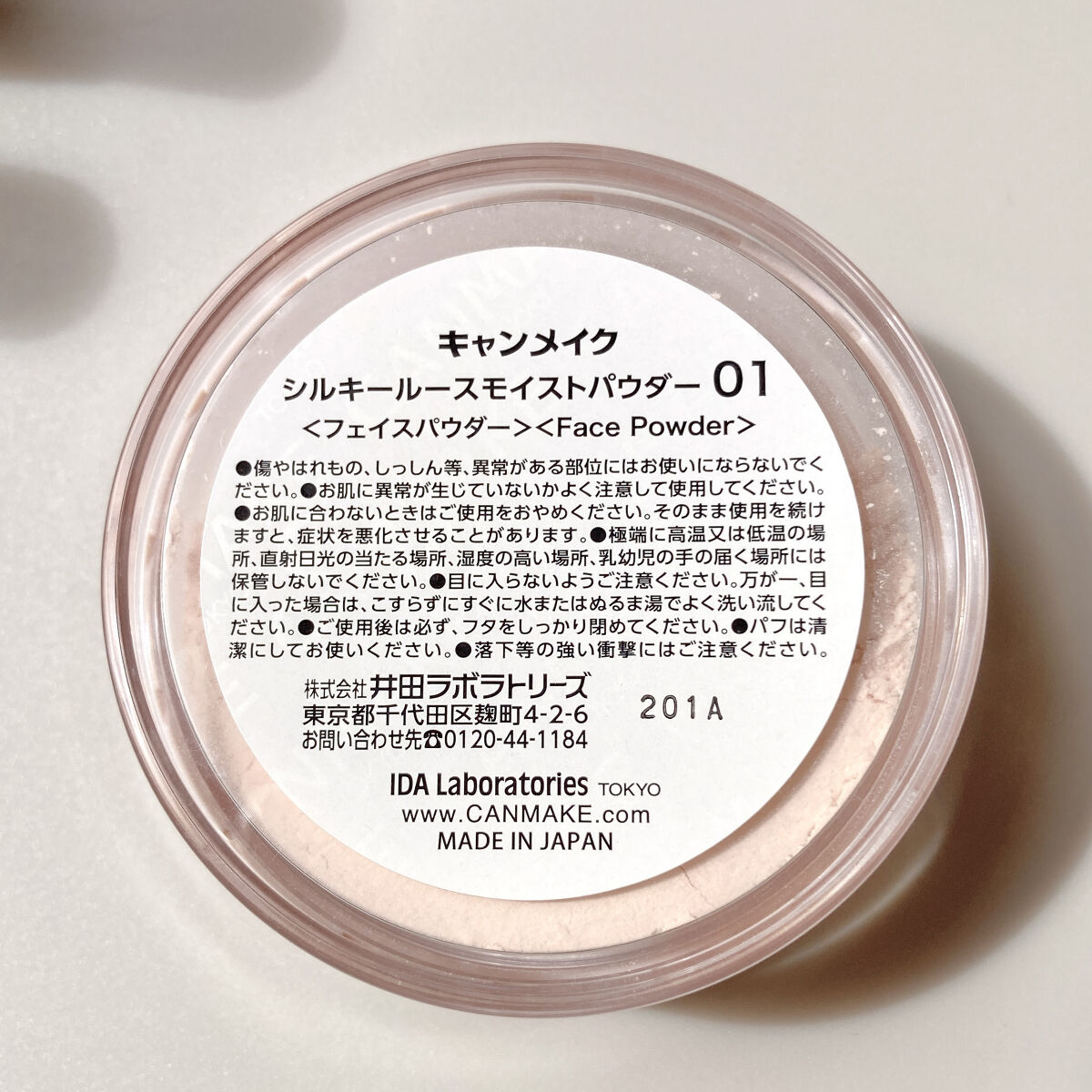 キャンメイク シルキールースモイストパウダーP01#LIPSで購入シルクのような肌触りというのに惹かれて買ってみました。色はP01 ピンク系/血色感アップ パールタイプ です。SPF23PA++ 美容成分27種配合 石鹸でメイクオフOK です...