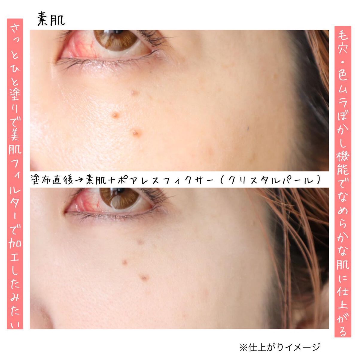 - 瞬時に毛穴・色ムラ知らず 長時間持続するポアレス肌*へ *メイクアップ効果によるもの 肌を塗り隠さないのに、毛穴だけでなく、色ムラまできれいにぼかす。 肌にしっかり密着するパウダーが皮脂を吸着。 べたつきのない、素肌そのものがトーンアップしたような美しい仕上がりが長時間続く。 ●皮脂吸着パウダー配合 ●光の効果で、肌の明るさをブースト ●マスク着用時も長時間サラサラ持続 ●洗顔料で落とせる