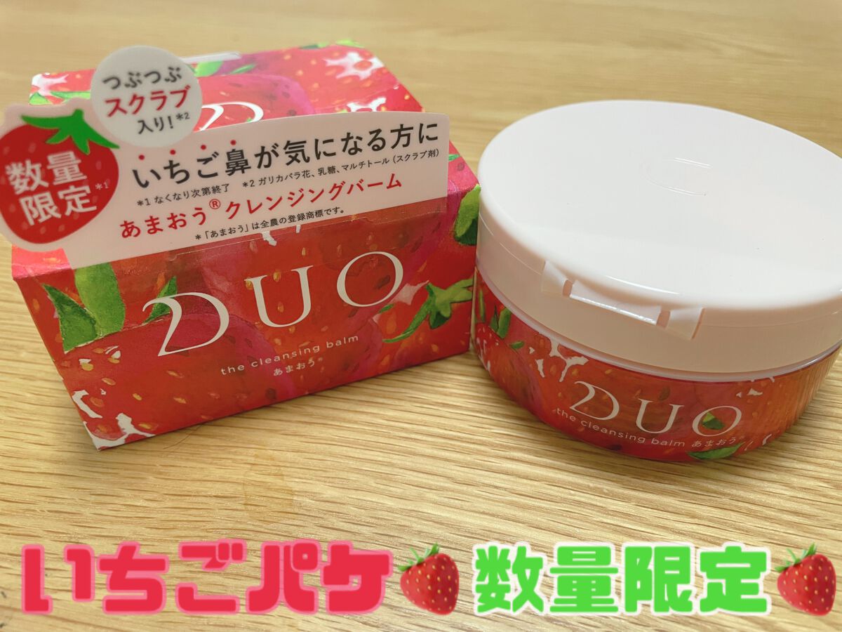 - 数量限定発売 クレンジング売り上げ2年連続No.1の「デュオ ザ クレンジングバーム」シリーズより、毎年人気の「いちごのクレンジングバーム」が、今年はいちごの王様 “あまおう®“バージョンで数量限定で登場。 鼻の毛穴がポツポツと目立って、まるでいちごのように見える“いちご鼻*³ “。そんな“いちご鼻“を、福岡県産“あまおう®“由来のDUO独自開発原料エキス配合で柔らかなうるおう素肌に導きます。 *「あまおう」は全農の登録商標です