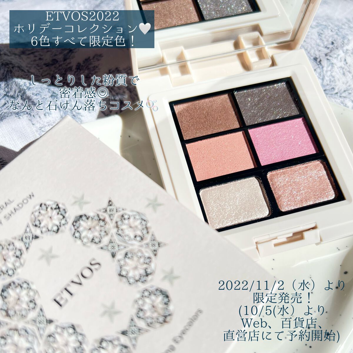 - ããªããŒã·ãŒãºã³ã®ç³ã«ã6è²ã®å®ç³ãã ç¡æ°ã®èŒãæ¹ãæããŠããããéå®ã¢ã€ã·ã£ããŒãã¬ããã ãã€ãã®èªåã«å°ãã ããèŒããšè¯ããããã©ã¹ããããªãå£ç¯ã ãšããŽã©ã¹ãããªããŒã·ãŒãºã³ã®çŒå·®ãã«èŽãã®ã¯ã人æ°4è²ãã¬ããã6è²ã«ããªã¥ãŒã ã¢ããããããªãŒã«éå®è²ã®ã¢ã€ã·ã£ããŒãã¬ããã ãšã¬ã¬ã³ããªçºè²ãéç«ã€ã·ã«ããŒã«ã©ãŒãšã倧ç²ã®ãããããèŠç·ãæ¹ãã€ããã°ãªãã¿ãŒã«ã©ãŒã ããããã®è²ãå®ç³ã®ããã«å ãæåœ±ããªããã衚æ ã幟éãã«ãæŽç·ŽãããŸãã ã·ã£ã€ãã³ã°ã»ãžã§ã ãæãããããªããŒã·ãŒãºã³éå®ããã±ãŒãžã ïŒãã¿ãŒã¯ãã¥ãŒã«ïŒ ãŽãŒãžã£ã¹ãªç ãããæŸã€ãããªããŒãŽãŒã«ããã¬ãããæž©ãã¿ããµããã¢ã³ããŒã¬ãããšå€§ç²ã®æè²ã°ãªãã¿ãŒãã衚æ ã倿§ã«æŒåºããŸãã å·Šåã®3è²ãéããã°ã¯ãŒã«ã«ãå³åã®3è²ãéããã°ã©ã°ãžã¥ã¢ãªãŒã«ã ïŒãã§ã¢ãªãŒã¯ãã¥ãŒã«ïŒ æããããšãã¥ã¢ãã®ããµãããã·ã£ã€ããŒãã³ã¯ãã¬ããããšããžãŒãªåŒãç· ãè²ãšå€§ç²ã®åå ã°ãªãã¿ãŒãã衚æ ã倿§ã«æŒåºããŸãã å·Šåã®3è²ãéããã°ã¹ãŠã£ãŒãã«ãå³åã®ïŒè²ãéããã°ã»ã³ã·ã¥ã¢ã«ã«ã