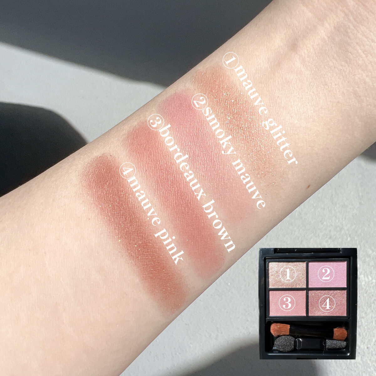- 敏感肌のまぶたをケアしながら、美しく彩る。ミネラルの色と光を重ねて、メイクするたび自分らしく。 着眼点は「大人のくすみ※1やすい、まぶた」。 敏感になってしまった肌に対し、8種の美容成分※2がうるおいを与えながら丁寧にケアします。 なりたい表情をメイクで叶えながら、健やかな透明感※3のあるまぶたへ。 大人の目もとを上品なツヤと発色で彩る4色アイカラーは、まぶたに吸い付くような質感で、澄んだ眼差しを演出します。 心のままに色を重ねて、なりたい自分を描いて。 ※1 乾燥によるもの ※2 保湿成分:ヒアルロン酸Na、ポリクオタニウム-61、シロキクラゲ多糖体、アシタバ葉/茎エキス、クダモノトケイソウ果実エキス、モモ花エキス 整肌成分:グリチルレチン酸ステアリル、グリチルリチン酸2K ※3 メイクアップ効果による