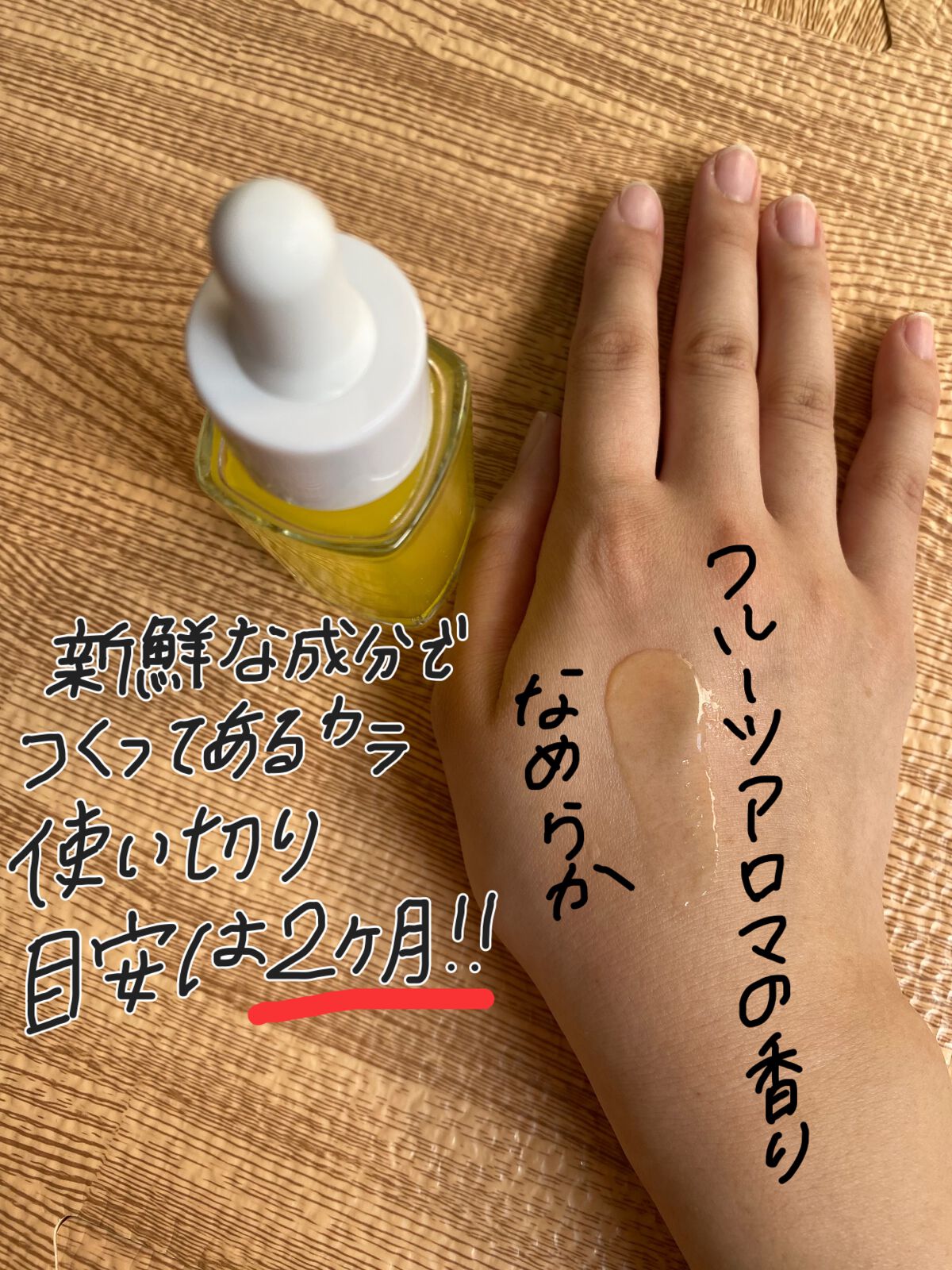 高濃度ビタミンCが入っていて、新鮮なままのビタミンCだから毛穴や美白に効果が期待できるもの 蓋に2ヶ月目安って書いてあるのが新鮮さの裏付けになっていてとてもよい🥰 ホワイトカプセル状になっていて、中に抗酸化作用たっぷりの栄養が入っている仕組み スポイト型で中身の見えるパケが可愛いし、衛生的 テクスチャーはトロッとしたタイプで、液垂れはしにくいけどベタつかない丁度いい感じ 大体3,4液で顔全体に使えて、レモンのさっぱりとした香りがするのが特徴 新鮮なまま肌に届けたいから紫外線の強い季節とかには毎日たっぷり使いたい👌