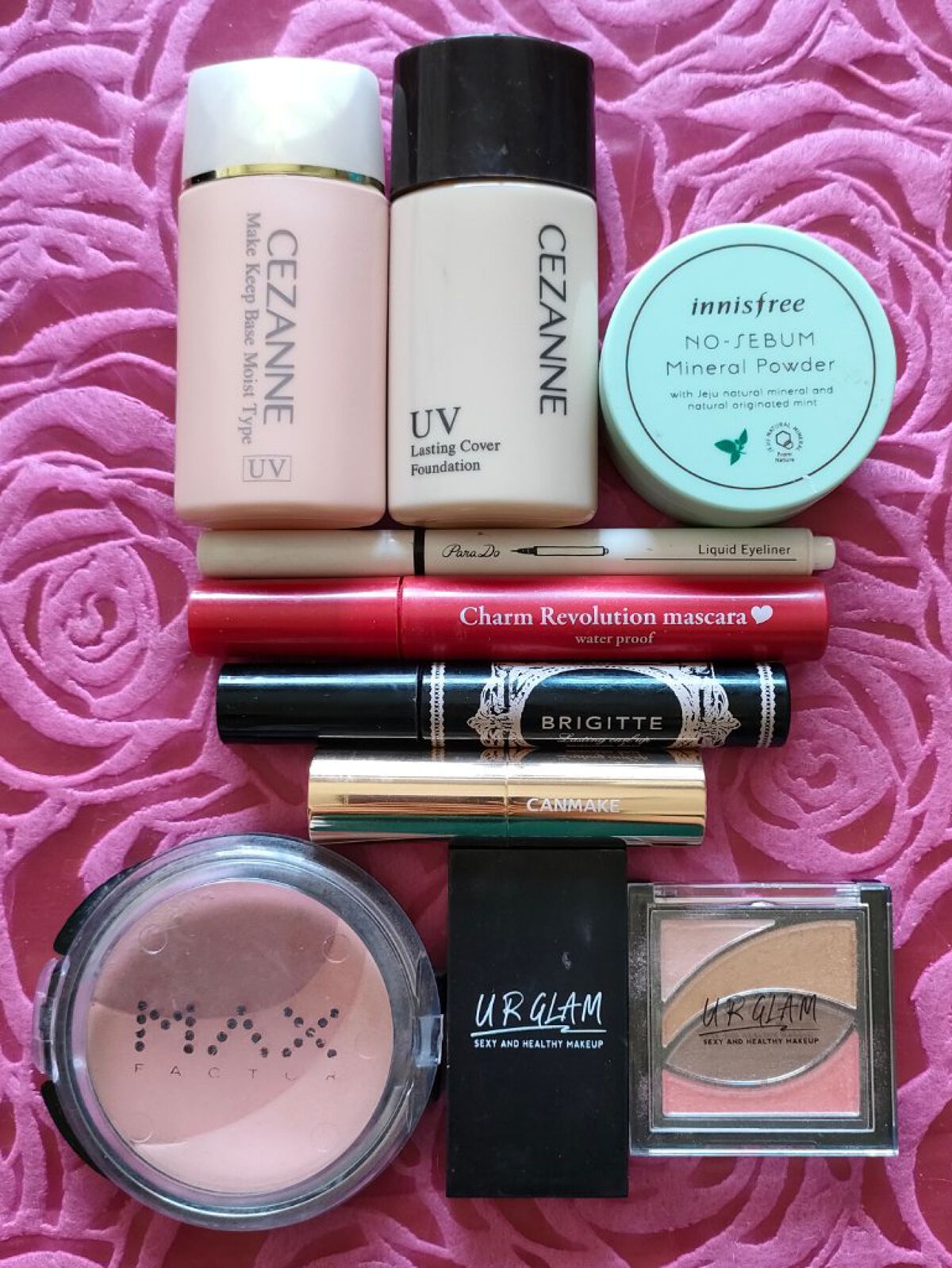 アリィー ニュアンスチェンジUV ジェル RSを、顔全体にまんべんなく塗ります。 RMK RMK ジェルクリーミィファンデーション 103を、顔全体にまんべんなく塗ります。 ジョンソンベビー ジョンソン ベビーパウダーを、顔全体にまんべんなく軽くはたきます。 THE BODY SHOP bronze shade warm glowを、両頬に塗ります。 KATE リフレクトミラーアイズ BR-1の締め色を、眉毛全体にまんべんなく塗ります。 URGLAM UR GLAMBLOOMING EYE COLOR PALETTE 01を、使用しました。 ちふれ リキッド アイライナー 筆ペンタイプ BK30 ブラックを、塗ります。 CEZANNE エアリーカールマスカラを、まつ毛全体にまんべんなく塗ります。 MAYBELLINE NEW YORK コロッサルボリュームエクスプレスを、まつ毛全体にまんべんなく塗ります。 MAYBELLINE NEW YORK SPステイ マットインク 135を、唇全体にまんべんなく塗ります。