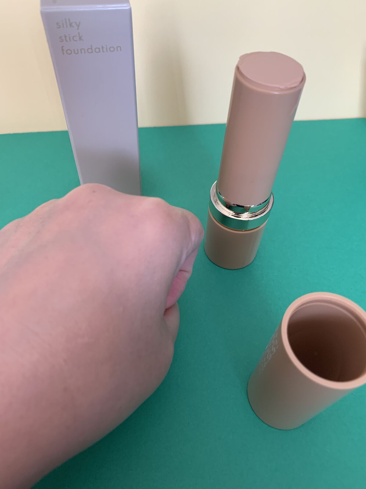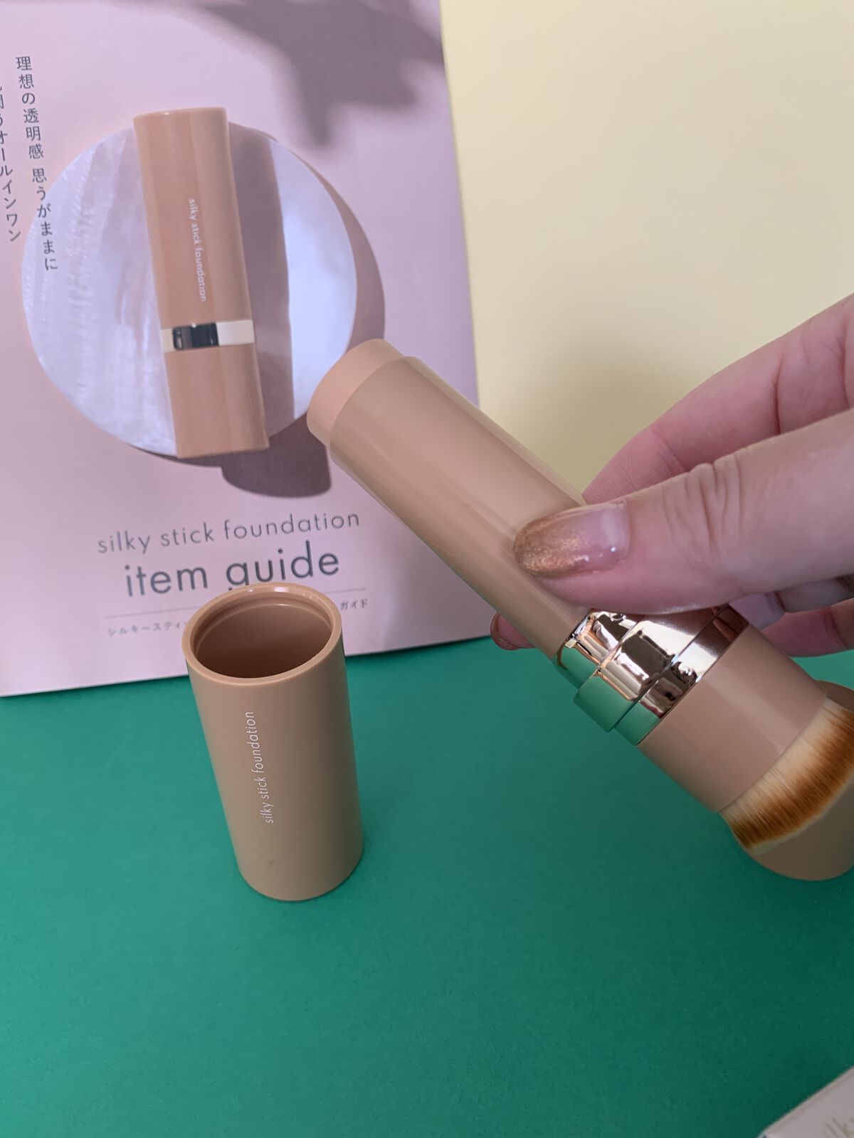 1品8役のオールインワンファンデーションがリニューアル! ベースメイクのアイテム数が増えすぎて一つにまとめたい!そんな方にぴったりなスティックタイプのオールインワンファンデーションです☺️ 注目のナイアシンアミドなど美容成分も含まれていて、スキンケア感覚で使える美容液ファンデーションとなっています。 真っ白ファンデが自分色に変わるマイカラーチェンジ処方です。力を入れずに塗っていき、ブラシで肌に馴染ませます。