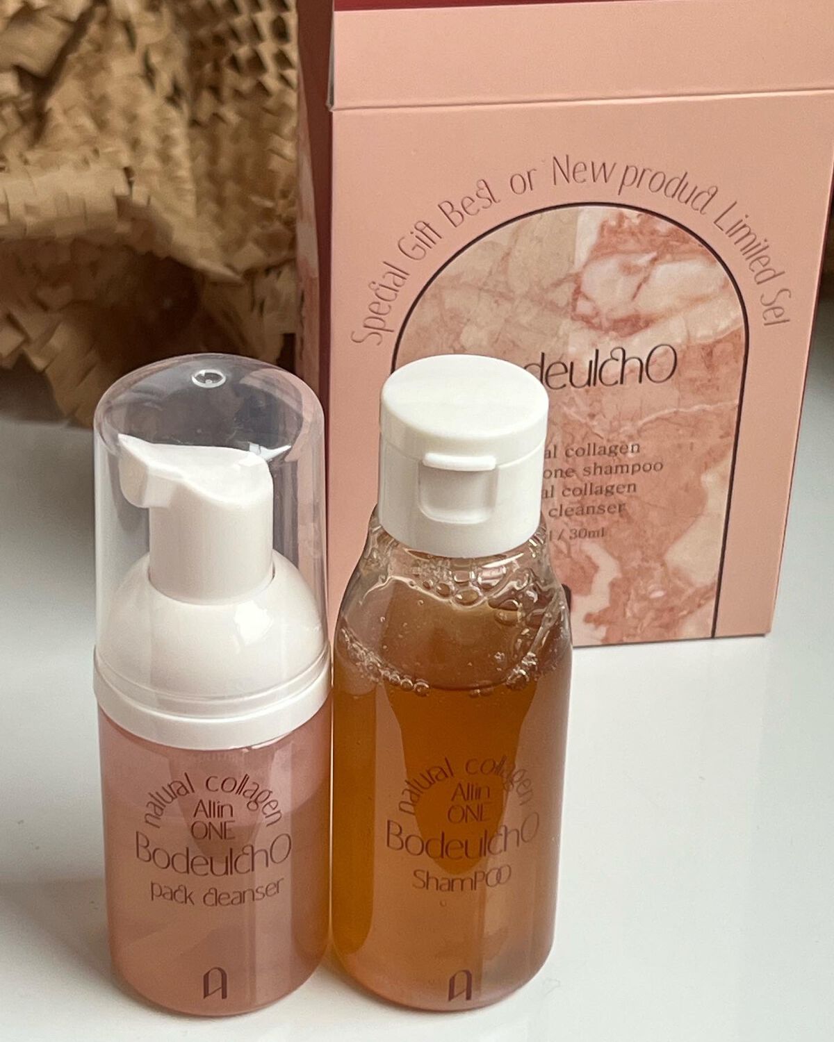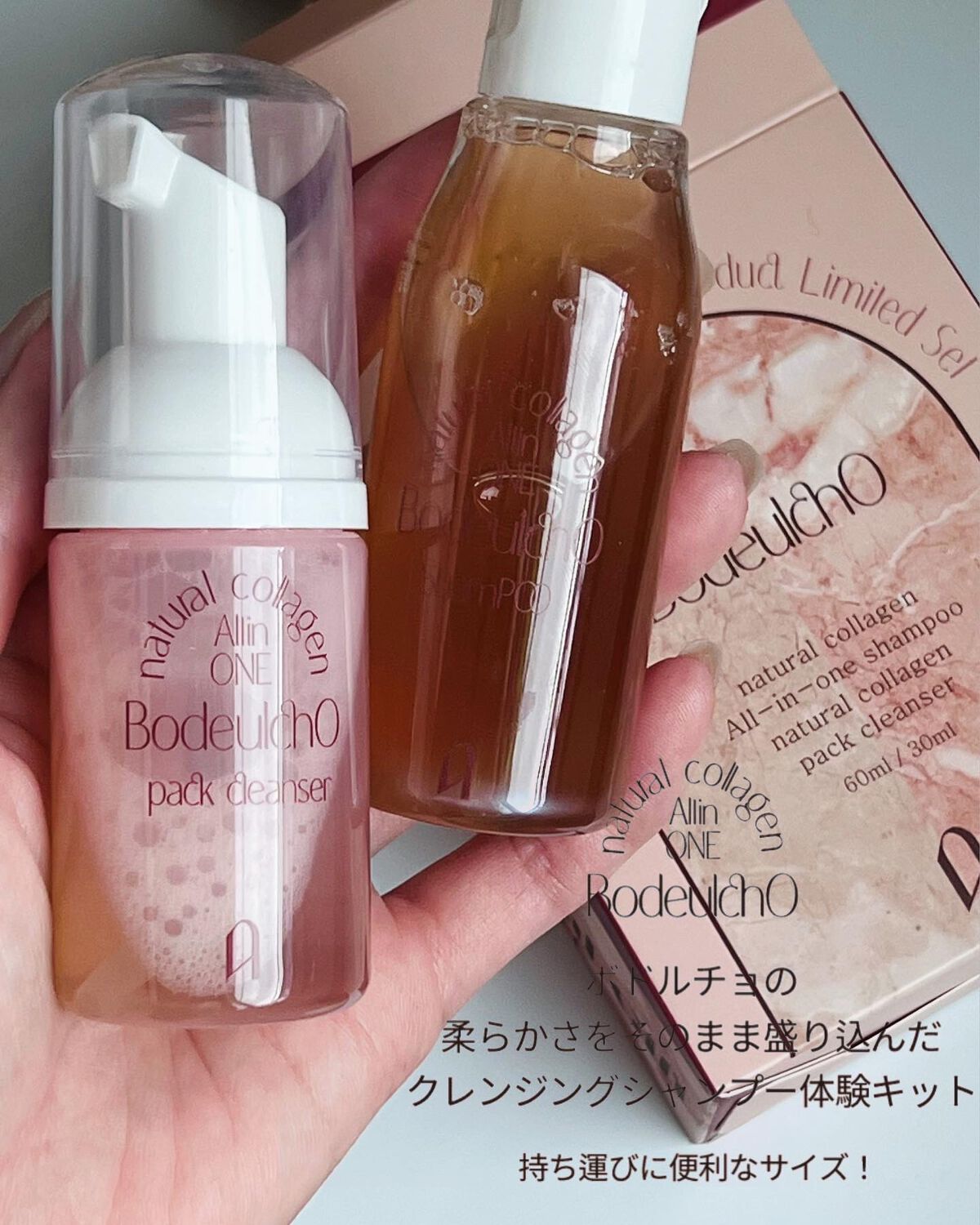 友だちとお揃いで買った、AMIOKのボドルチョウォッシュパック、シャンプーとセットのものを購入。これはトラベルサイズなので旅行ですごく重宝しました!旅行中に泡立てネット持っていかなくても泡で洗えるという楽さ。すごく濃厚な泡って感じではないけど...