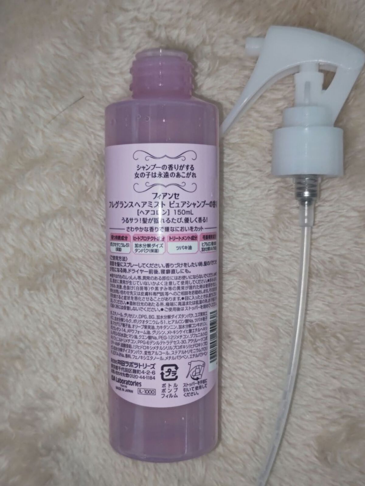 フィアンセフレグランスヘアミストピュアシャンプーの香りだいぶ前にLIPSショッピングで購入して、最近ようやく使い始める事が出来ました🤗✨めちゃくちゃ良い香りで、髪の毛も落ち着く感じがします💖子どもの寝癖直しにも使っていますが、寝癖直りました!...
