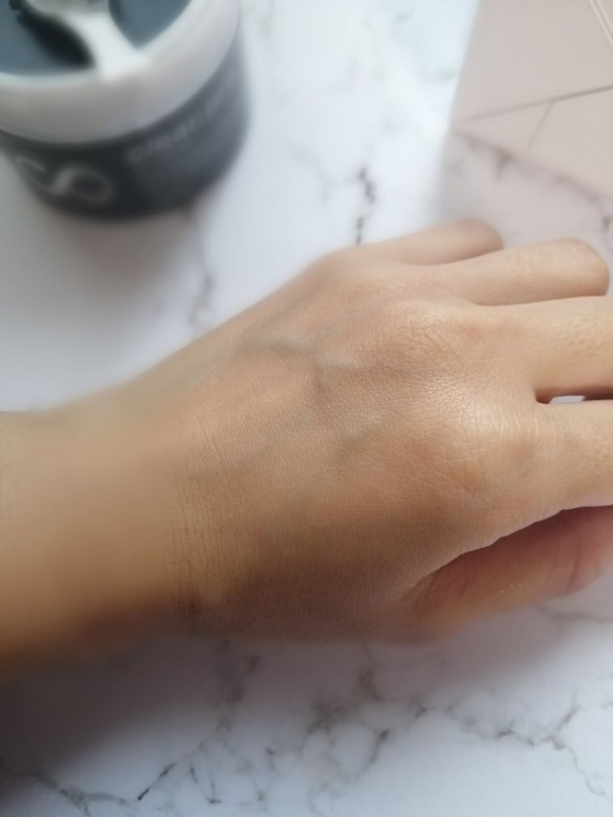 時間が経つとマットな雰囲気。 唇の水分に反応してツヤのあるジェル膜が形成されるとのことだったけど、乾燥してるとツヤ感に個人差もあるのかな? 保湿成分の所にセイヨウハッカ葉エキスを使ってるようで、どこかスーっとする清涼感もあるリップでした。
