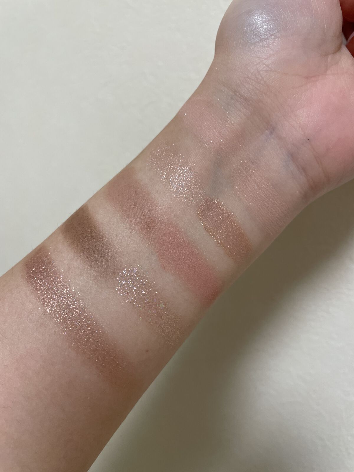 01パール感が可愛い❤️発色は普通。 03は粉質柔らかく発色弱めで粉飛び・ラメ落ちあり。 色味はピーチを期待してたけどベースカラーは結構白みが強いピーチ?ピンク?でミルキー感が強くて個人的にはそんなにイエベ向き!って感じはしなかったかも。 アイシャドウベース併用してても朝したメイクが昼頃には薄くなってたので、どちらもそんなに持続力はないかも?