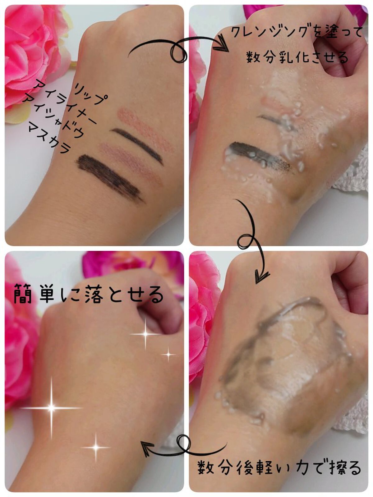 | バームを肌に乗せて撫でるとすぐに オイルみたいにみずみずしく変化✨ | 詳細を見る | ||