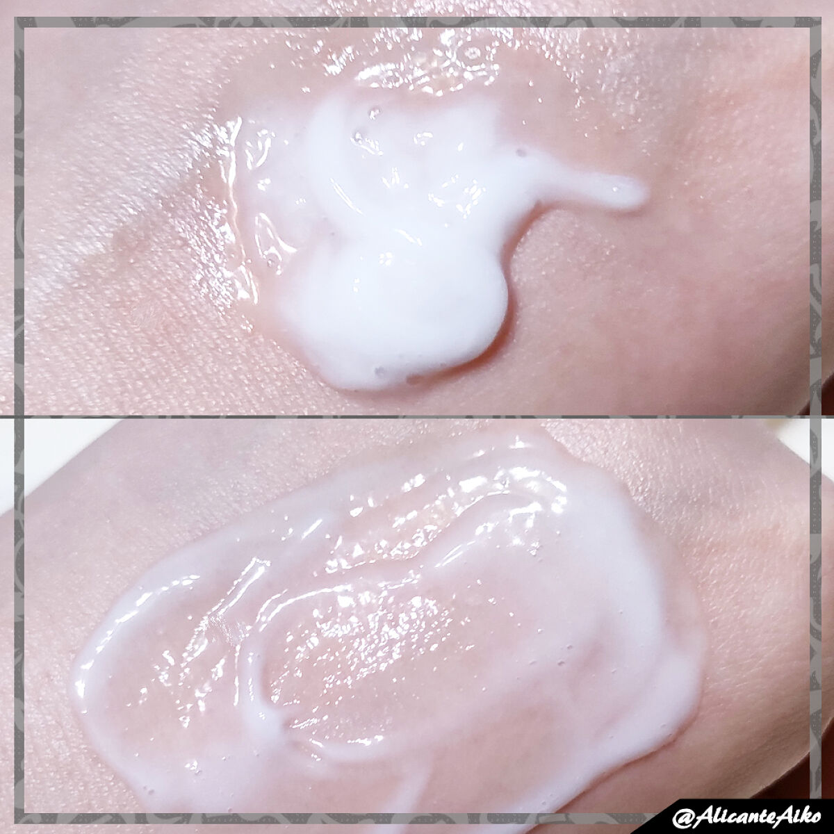 化粧水はほんのりトロミのあるさらさらしたテクスチャー🎵 肌馴染みが良く、伸びも良い使い心地です♡ 大容量なので惜しみなく使えるし、コットンパックしても気持ちよかったですよ😁 美容液はとろみのあるテクスチャー。 粒々があるのですが、 コエンザイムQ10(ユビキノン:保湿)配合の美容カプセルなんだそうです! こちらも肌馴染みが良く、伸びも良い使い心地♡ 使い続けることで、潤いによって毛穴が目立ちにくくなってくれるのを期待したいです👍🏻