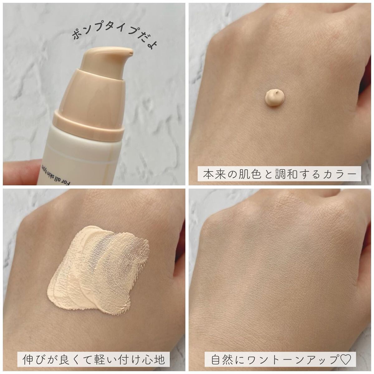 さらさらとしたピンクベージュのリキッドタイプ。 少量でもするすると伸びて、お肌にぴたっと密着します! 乾燥せずほんのり血色感もUP🌷 ちょっとそこまで用や、お家用の日焼け止めとして使うのにちょうどいいアイテムだなと思いました🙆♀️ しっかりカバーを求めている方には物足りないけど、全体的にふわっとフィルターをかけたようなナチュラルな仕上がりが好きな方にはぴったり😉 量が多いと白浮きしてしまうので様子を見ながら使うのがポイント☝️
