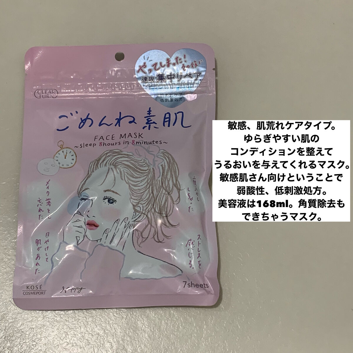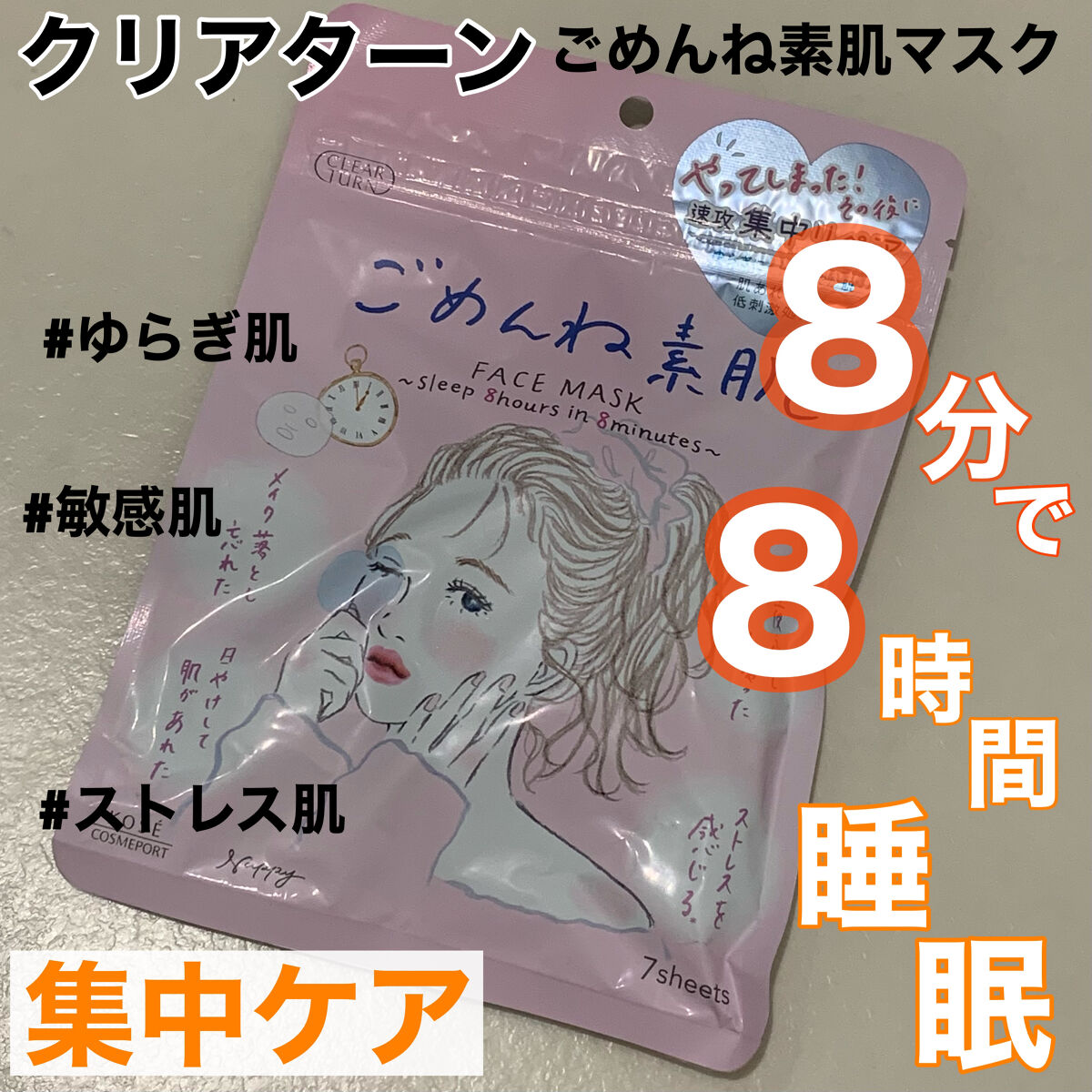 うるおいケア・肌荒れケア・角質ケアがこれ一つ🫶クリアターン ごめんね素肌マスク8分の集中ケアで8時間熟睡したようなお肌に⤴︎✨”というキャッチコピーが印象的なクリアターンのシートマスク。⳹ごめんね素肌マスク⳼肌悩みに対応する製品シリーズで優し...