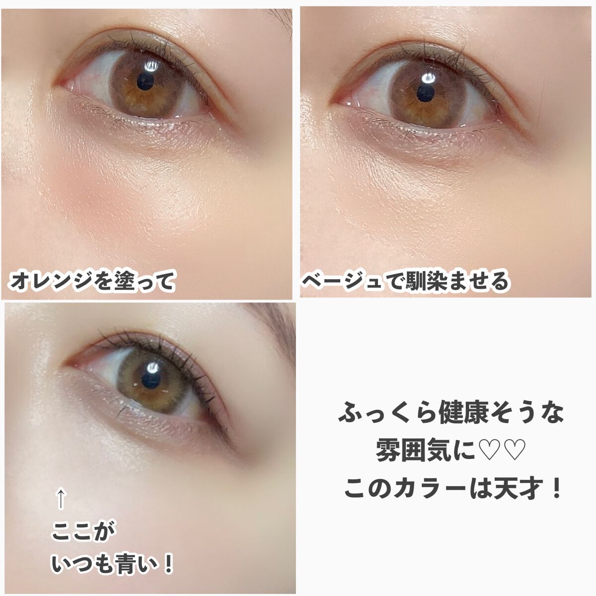- なめらかな伸び広がりで薄膜にピタっとフィット。2色を重ねて気になるクマを徹底カバー、目もと用コンシーラー。