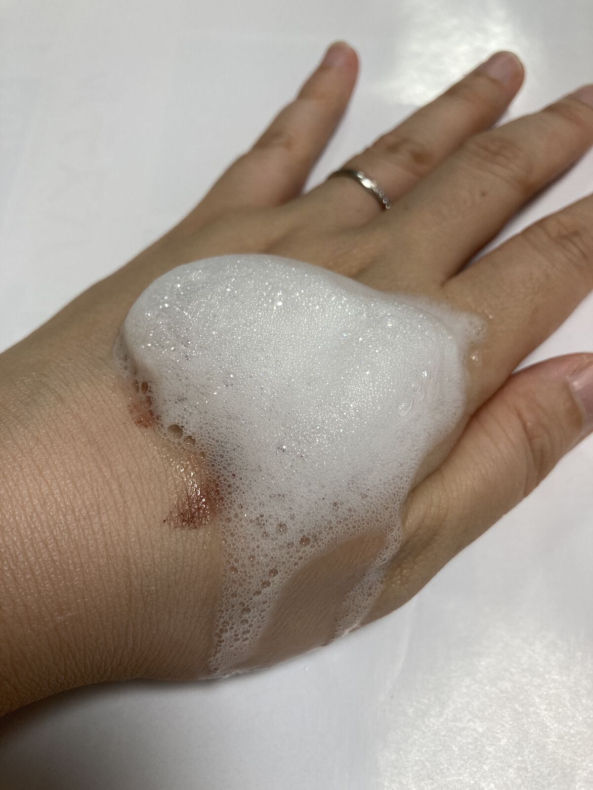 泡がパチパチとなるにつれて少しづつメイク汚れを吸収して泡が色づいていくのが目に見えてわかりました。 感想としては、想像よりおちた!! 正直あまり期待してなかったのですが、 メイクを落とす力はありそうです!! ただ実際にお風呂でつかたてみたところ、 泡を顔に乗せてハンドプレスしてる間に、重力で泡が垂れてきてしまって、メイクを落としきる前に、透明になってきちゃったかなという感じがして、使い方にコツがいる(上を向いたり?)なと感じました。