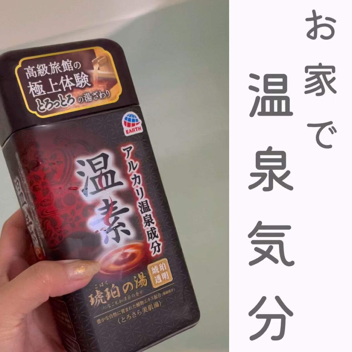こちらの入浴剤、天然の黒湯温泉に似た質感を自宅のお風呂で再現出来ちゃいます🛀♨️ お湯の質感もとろっとして気持ち良く、温かいのが持続する感じがします。 保湿成分として、5種類の植物エキスが配合されているようです🌱