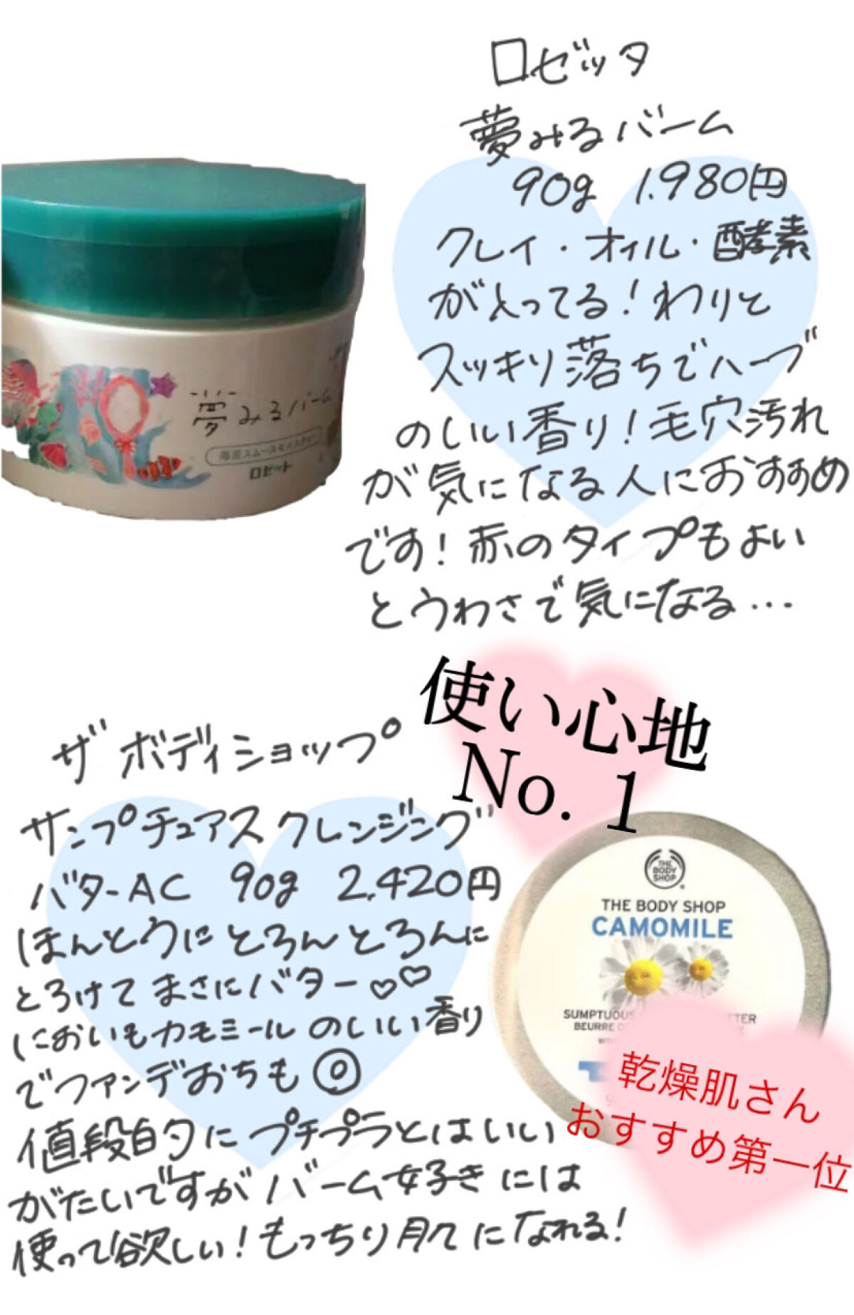 | クレンジングバームランキング第47位 | ウォータープルーフやティントもしっかり落ちて、 さらに洗い上がりがしっとりで大好き💕 | 詳細を見る | ||
