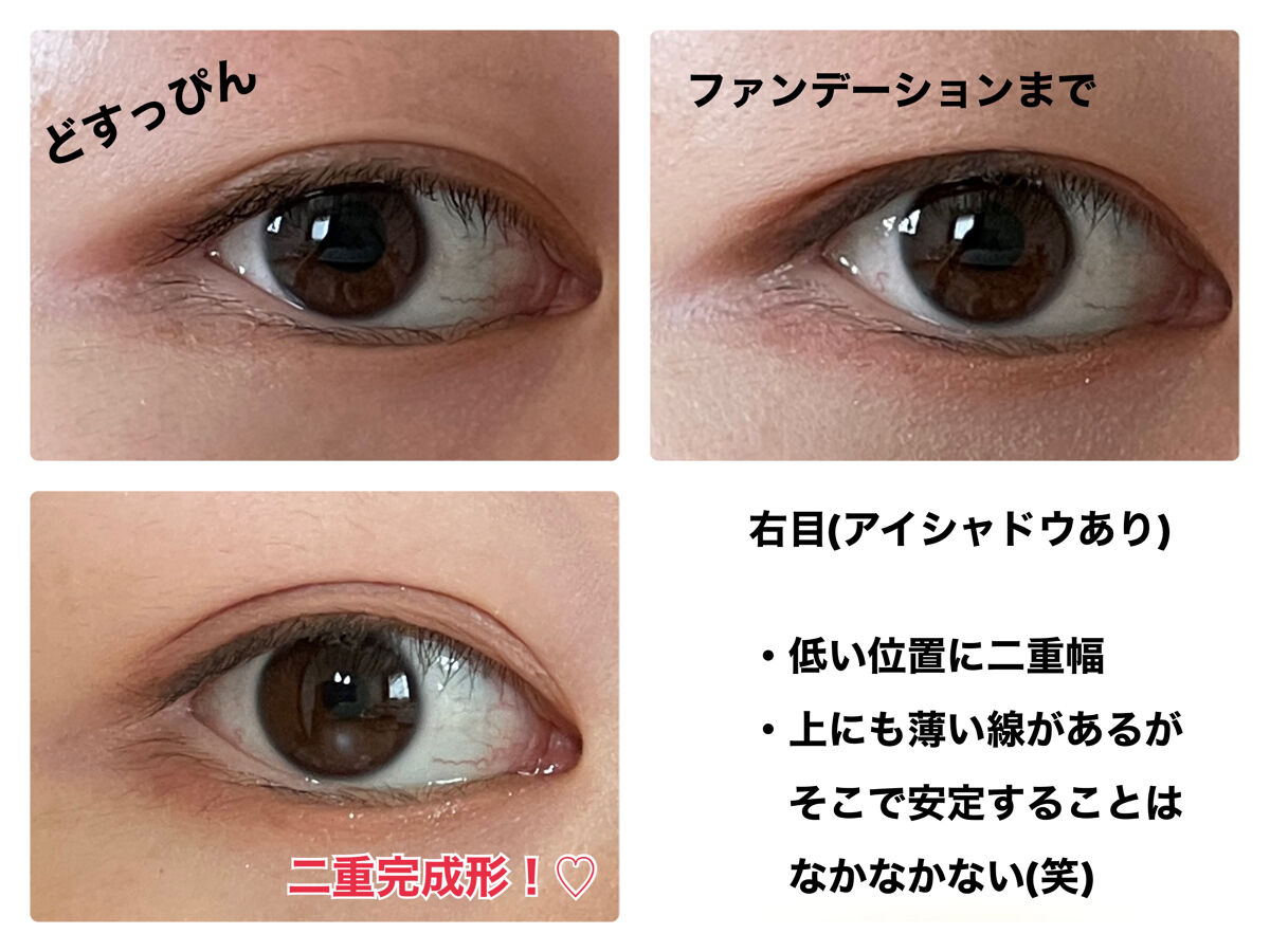 - 【感動の自然さ】 ・膜を作ってまぶたに折り込むタイプ ・ふたえの幅を広げたい方、ひとえの方へ ・今までの皮膜では叶わなかった方に ・薄付きなのにしっかり硬い膜でまぶたを支える ・テカらず肌になじむ ・天然ゴムラテックスフリーの新処方(シン・ラテックス) ・目元のハリケアにも*メイクアップ効果による ・クセ付け・保湿成分配合