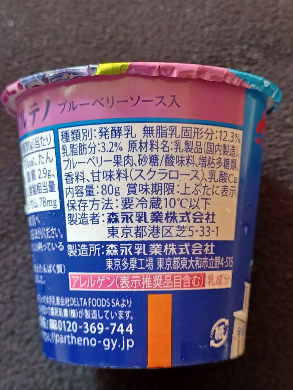 森永乳業ギリシャヨーグルトパルテノブルーベリーソース入大体200円位だったかと思います😊ドラストか、コンビニで購入したけれどどっちか忘れてしまいました😅ゆるいダイエットをしていてプロテインが入っているヨーグルトを色々試し中です♪味は美味しかっ...