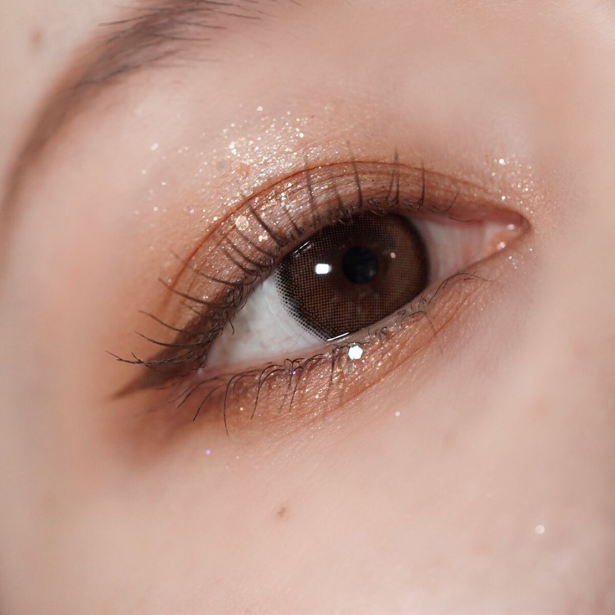 マットなレッドブラウンと多色ラメ🤩!!✨マスカラはブラック×ブラウンで👀💕✨私の好きな組み合わせ\♡/"マット2色で簡単グラデーションをして指で多色ラメを重ねる❕✨涙袋には、小さめのチップで涙袋中央だけにちょん。たっぷりめにのせるのが好き😍💓...