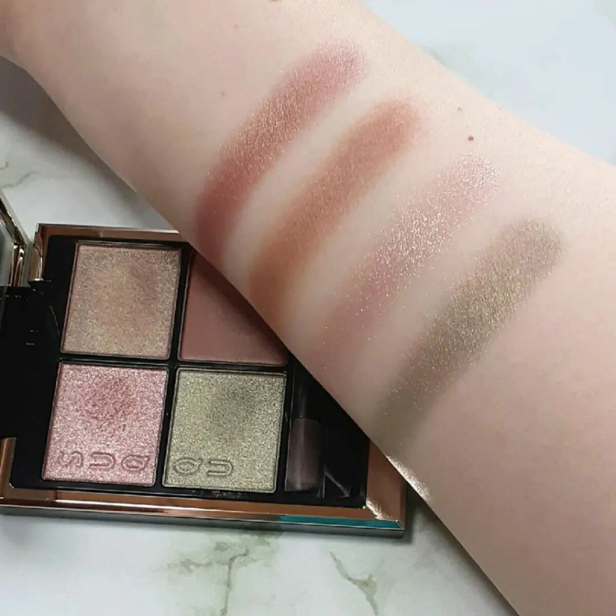 そして今までにない新しい質感❗ 粉なんだけど硬めのクリームのような感じ😳 繊細なシルバーラメが煌めくマット4色のパレットで、ナチュラルな発色🧡 硬めのクリームみたいな質感が、しっとりとしていて肌にピタッと密着👍❤️ 粉飛びもしないです‼ 肌馴染みが良いカラーなので、普段使いもしやすいかな🙋♀️