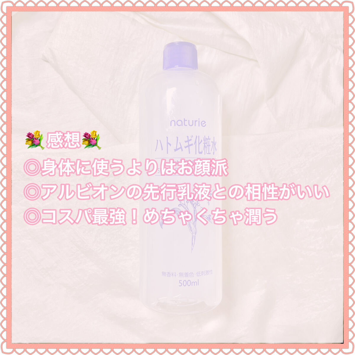 冬にも使いやすいハトムギスキンケア 今回は通常と裏技を試してみた 化粧水はもちろんジェルも水分量81%でみずみずしい フットケアやボディケアもクリームの前に加えると良さそう🧴