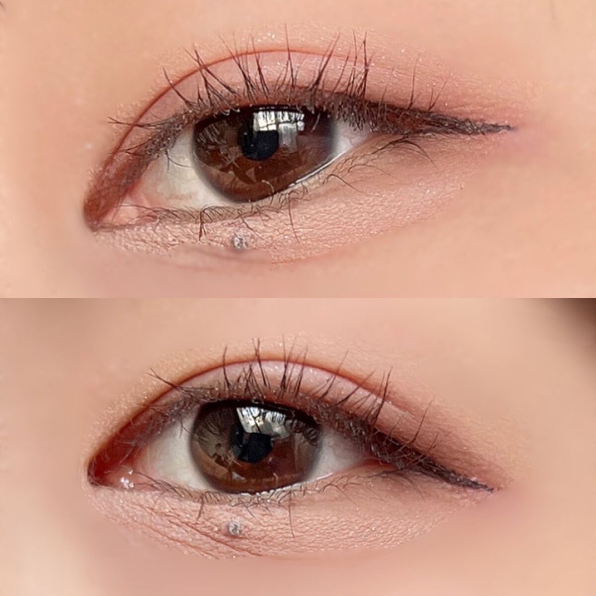 パッケージは可愛くてパッケージカラーのようなスキントーンのブロウマスカラ。 使い方はペンシルで描いてからコンシーラーで色を消して、最後にブロウマスカラするみたい。 やっぱりコンシーラーした方がより明るめの発色になる感じ。