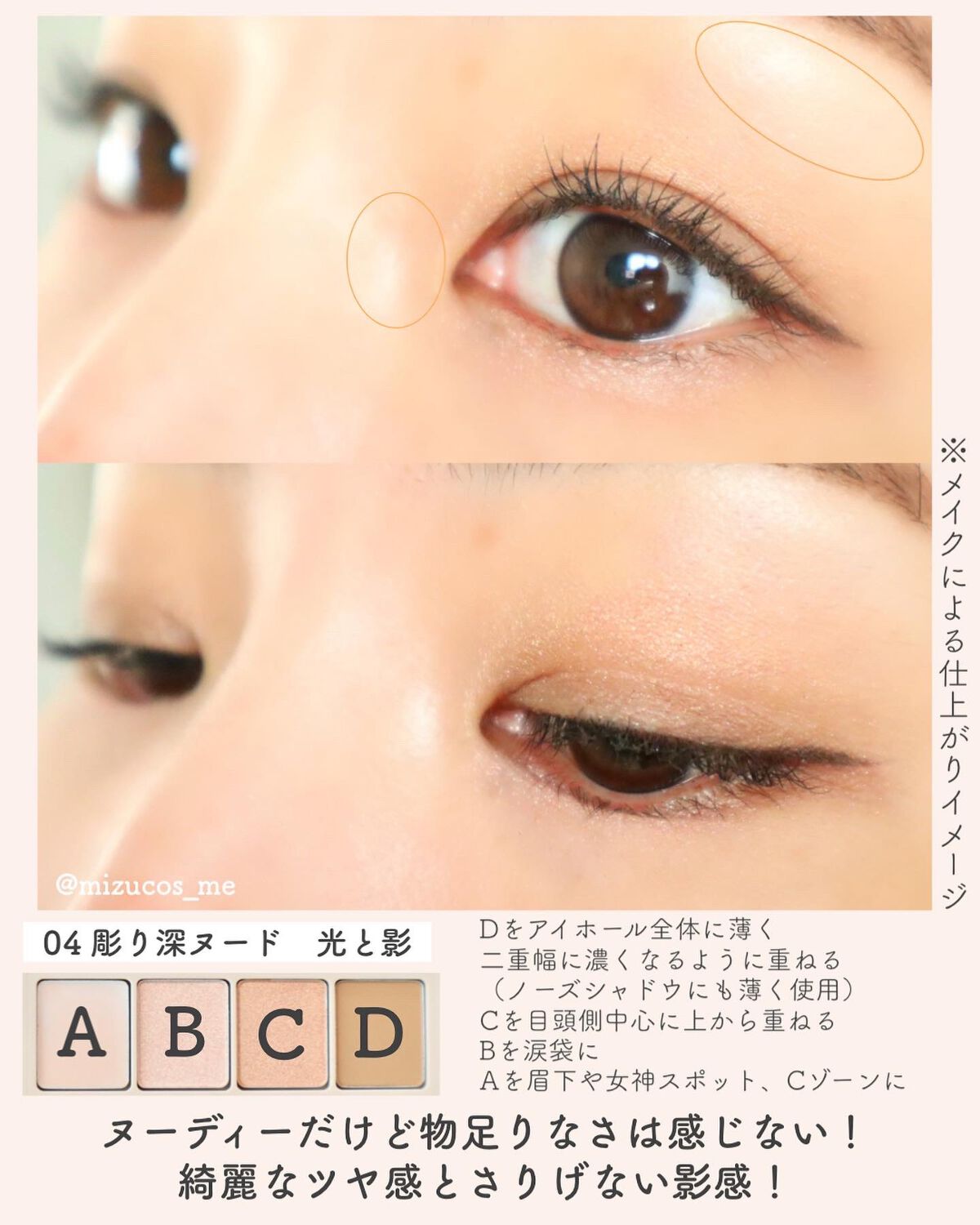 - ※フジコの足しパレは4色で目元をつくるパレットではありません。 捨て色なし。使える4色パレットなら、“ひと塗りで ほら、可愛い。” 可愛さ溢れる足し算メイクで視線にインパクト。 使える色だけ4色集めたFujiko初のアイパレットが登場。単色でも重ねてもシアーな彫り深に。 ひと塗りで、明るさの中に影を仕込む、印象的なアイメイクが簡単に。 ひと塗りで、じんわりとした“深み”と“レイヤード” 単色はもちろん、お手持ちのシャドウに重ねて足しても 足しパレ同士を重ねて足しても溢れる可愛さ無限。 【04彫り深ヌード 光と影】 A:濡れ感のあるバームハイライト B:シャイニーで繊細に盛るクリアハイライト C:スポットライトのように光を集めるベージュハイライト D:影を仕込み深みを足すローライト ※B・Cはオイルを多めに含んだ密着度が高い滑らかなパウダー。 【05抜け感アイブロウ】 A:ナチュラルブラウン(マット) 簡単に眉毛全体を上手に描ける高発色処方。 高密着オイルパウダー×多孔質パウダー配合で、粉飛びしにくく発色長時間キープ。 B:ライトベージュ(パール) 眉毛の野暮ったさを抜き、抜け感と透明感を演出。 繊細なホワイトパール(※1)の質感で、眉毛の色味をふわっと優しい印象に。 ▼カラーチェンジャー(印象を変え好みの雰囲気に仕上げる) C:可愛さ宿るニュアンスオレンジ(パール) レッドパール(※1)の輝きで、可愛さ溢れる柔らかい表情にチェンジ。 D:美人度格上げモーヴバイオレット(パール) ピンクパール(※1)の煌めきで、キリッと美人モードにチェンジ。 ※1 真珠光沢顔料配合