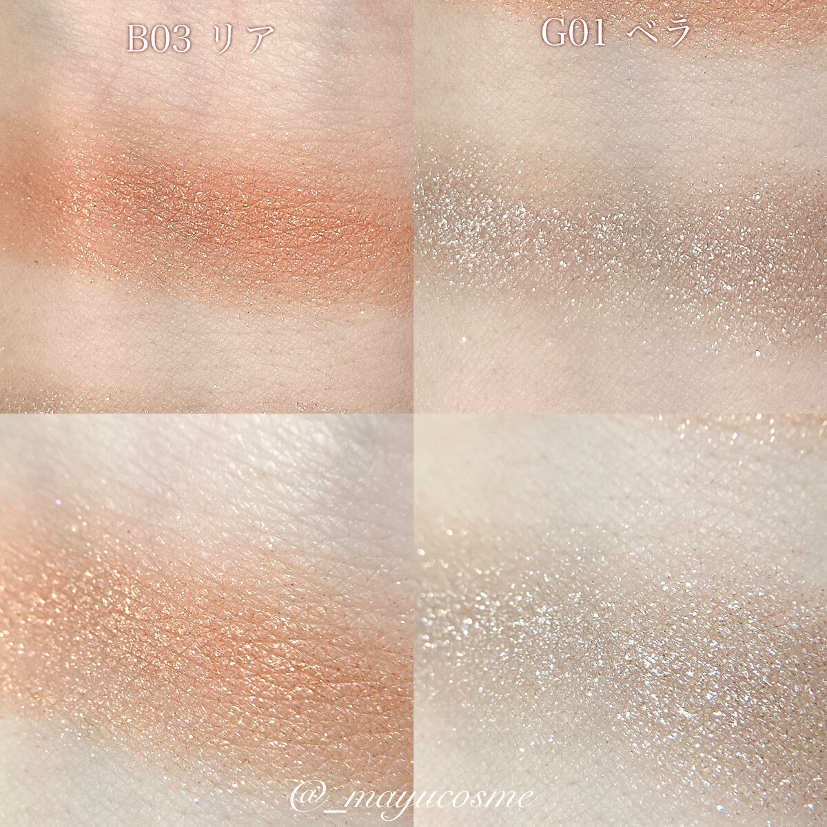 - <A03-レイラ> ラウロイルリシン、(ジメチコン/ビニルジメチコン)クロスポリマー、エチルヘキシルグリセリン、ペンチレングリコール、(+/-)ジメチコン、酸化チタン、酸化鉄、シリカ、タルク、マイカ、アルミナ、ホウケイ酸(Ca/Al)、金、銀、合成金雲母、酸化スズ、水酸化Al、赤202 <A04-グレイス> ラウロイルリシン、(ジメチコン/ビニルジメチコン)クロスポリマー、エチルヘキシルグリセリン、ペンチレングリコール、(+/-)ジメチコン、酸化チタン、酸化鉄、シリカ、タルク、マイカ、アルミナ、ホウケイ酸(Ca/Al)、金、銀、合成金雲母、酸化スズ、水酸化Al、赤202 <B03-リア> ラウロイルリシン、(ジメチコン/ビニルジメチコン)クロスポリマー、エチルヘキシルグリセリン、ペンチレングリコール、(+/-)ジメチコン、酸化チタン、酸化鉄、シリカ、タルク、マイカ、アルミナ、ホウケイ酸(Ca/Al)、金、銀、合成金雲母、酸化スズ、水酸化Al、赤202 <F03-エレノア> ラウロイルリシン、トリエチルヘキサノイン、ポリメチルシルセスキオキサン、エチルヘキシルグリセリン、イソステアリン酸水添ヒマシ油、セスキイソステアリン酸ソルビタン、リンゴ酸ジイソステアリル、ペンチレングリコール、(+/-)ジメチコン、トリエトキシカプリリルシラン、酸化チタン、酸化鉄、シリカ、タルク、マイカ、ホウケイ酸(Ca/チタン)、合成金雲母、酸化スズ、水酸化Al、赤226 <F04-ヴィクトリア> ラウロイルリシン、トリエチルヘキサノイン、ポリメチルシルセスキオキサン、エチルヘキシルグリセリン、イソステアリン酸水添ヒマシ油、セスキイソステアリン酸ソルビタン、リンゴ酸ジイソステアリル、ペンチレングリコール、(+/-)ジメチコン、トリエトキシカプリリルシラン、酸化チタン、酸化鉄、シリカ、タルク、マイカ、ホウケイ酸(Ca/チタン)、合成金雲母、酸化スズ、水酸化Al、赤226 <G01-ベラ> ラウロイルリシン、(ジメチコン/ビニルジメチコン)クロスポリマー、エチルヘキシルグリセリン、ペンチレングリコール、(+/-)ジメチコン、酸化チタン、酸化鉄、シリカ、タルク、マイカ、アルミナ、ホウケイ酸(Ca/Al)、金、銀、合成金雲母、酸化スズ、水酸化Al、赤202 <B05 ステラ> ラウロイルリシン、(ジメチコン/ビニルジメチコン)クロスポリマー、エチルヘキシルグリセリン、ハイドロゲンジメチコン、ペンチレングリコール、(+/-)ジメチコン、トリエトキシカプリリルシラン、酸化チタン、酸化鉄、シリカ、タルク、マイカ、ホウケイ酸(Ca/Al)、金、銀、合成金雲母、酸化スズ、水酸化Al、赤202、赤226 <B06 エイヴリー> ラウロイルリシン、(ジメチコン/ビニルジメチコン)クロスポリマー、エチルヘキシルグリセリン、ハイドロゲンジメチコン、ペンチレングリコール、(+/-)ジメチコン、トリエトキシカプリリルシラン、酸化チタン、酸化鉄、シリカ、タルク、マイカ、ホウケイ酸(Ca/Al)、金、銀、合成金雲母、酸化スズ、水酸化Al、赤202、赤226 <F05-ノラ> ラウロイルリシン、トリエチルヘキサノイン、ポリメチルシルセスキオキサン、エチルヘキシルグリセリン、イソステアリン酸水添ヒマシ油、セスキイソステアリン酸ソルビタン、リンゴ酸ジイソステアリル、ペンチレングリコール、(+/-)ジミリスチン酸Al、ジメチコン、酸化チタン、酸化鉄、グンジョウ、カオリン、マイカ、合成金雲母 <G02-ナタリー> ラウロイルリシン、(ジメチコン/ビニルジメチコン)クロスポリマー、エチルヘキシルグリセリン、ペンチレングリコール、(+/-)ジメチコン、酸化チタン、酸化鉄、シリカ、マイカ、ホウケイ酸(Ca/Al)、銀、合成金雲母、酸化スズ <S01-アガサ> ラウロイルリシン、シリカ、トリエチルヘキサノイン、ポリメチルシルセスキオキサン、エチルヘキシルグリセリン、イソステアリン酸水添ヒマシ油、ステアロイルグルタミン酸2Na、セスキイソステアリン酸ソルビタン、リンゴ酸ジイソステアリル、ペンチレングリコール、トリエトキシカプリリルシラン、(+/−)ジミリスチン酸Al、ジメチコン、メチコン、酸化チタン、酸化鉄、グンジョウ、カオリン、タルク、マイカ、アルミナ、合成サファイア、合成金雲母、酸化スズ、水酸化Al、赤202、赤226、黄4 <S02-アナベル> ラウロイルリシン、シリカ、トリエチルヘキサノイン、ポリメチルシルセスキオキサン、エチルヘキシルグリセリン、イソステアリン酸水添ヒマシ油、ステアロイルグルタミン酸2Na、セスキイソステアリン酸ソルビタン、リンゴ酸ジイソステアリル、ペンチレングリコール、トリエトキシカプリリルシラン、(+/−)ジミリスチン酸Al、ジメチコン、メチコン、酸化チタン、酸化鉄、グンジョウ、カオリン、タルク、マイカ、アルミナ、合成サファイア、合成金雲母、酸化スズ、水酸化Al、赤202、赤226、黄4