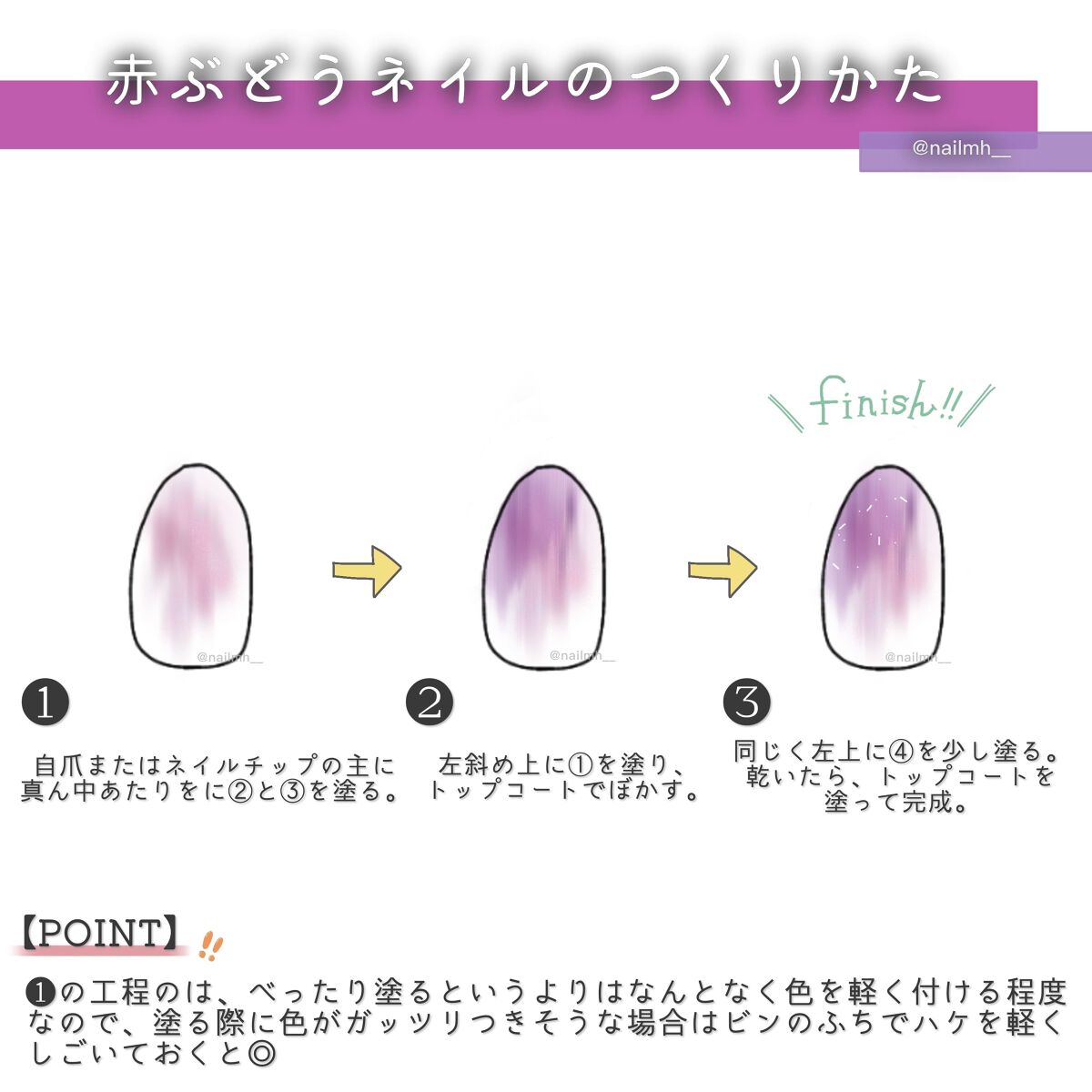ぽわんと血色感とちゅるんとしたツヤが可愛らしいネイルの紹介です! 中心に乗せた色をぼかすときは、素早くかつハケを優しくとんとんと叩いてぼかすこと。 ぼかす時にハケ跡がついてしまうと綺麗なぽわんとした血色感にならないのでぼかす時はハケをこすったり左右に動かすというよりはとんとんと軽く叩いて広げていくようなイメージでぼかしてください