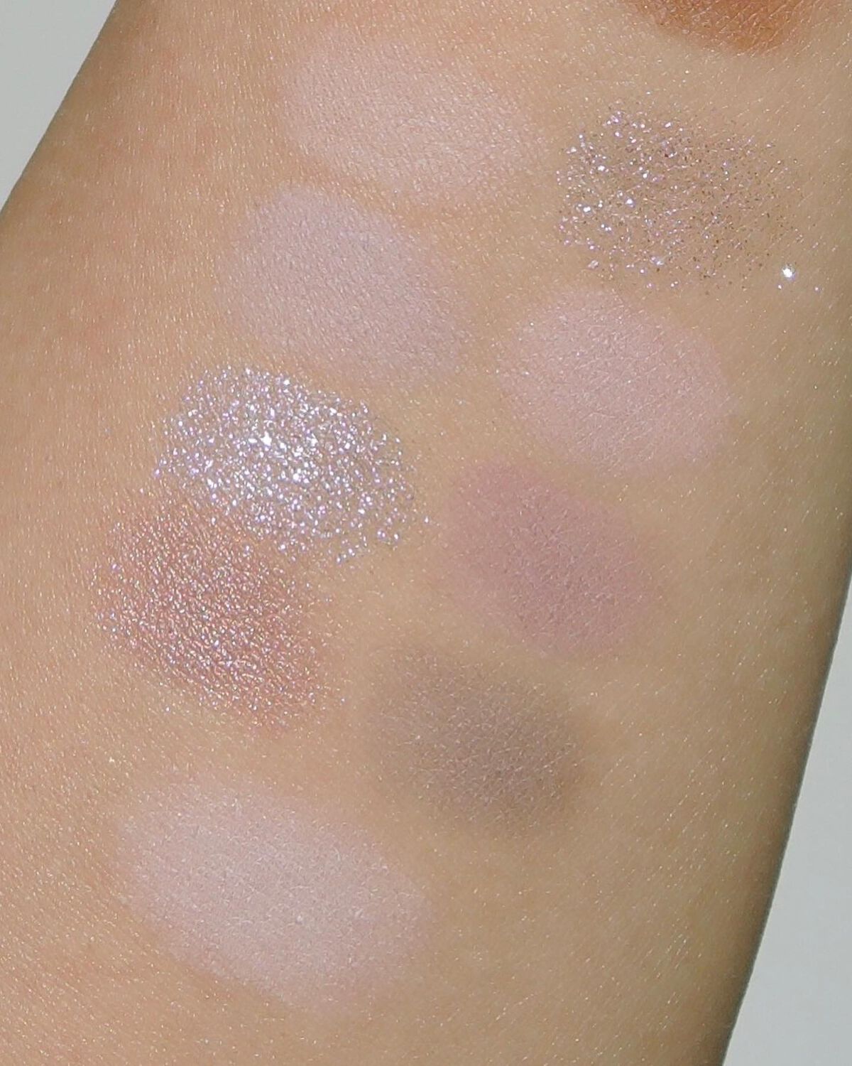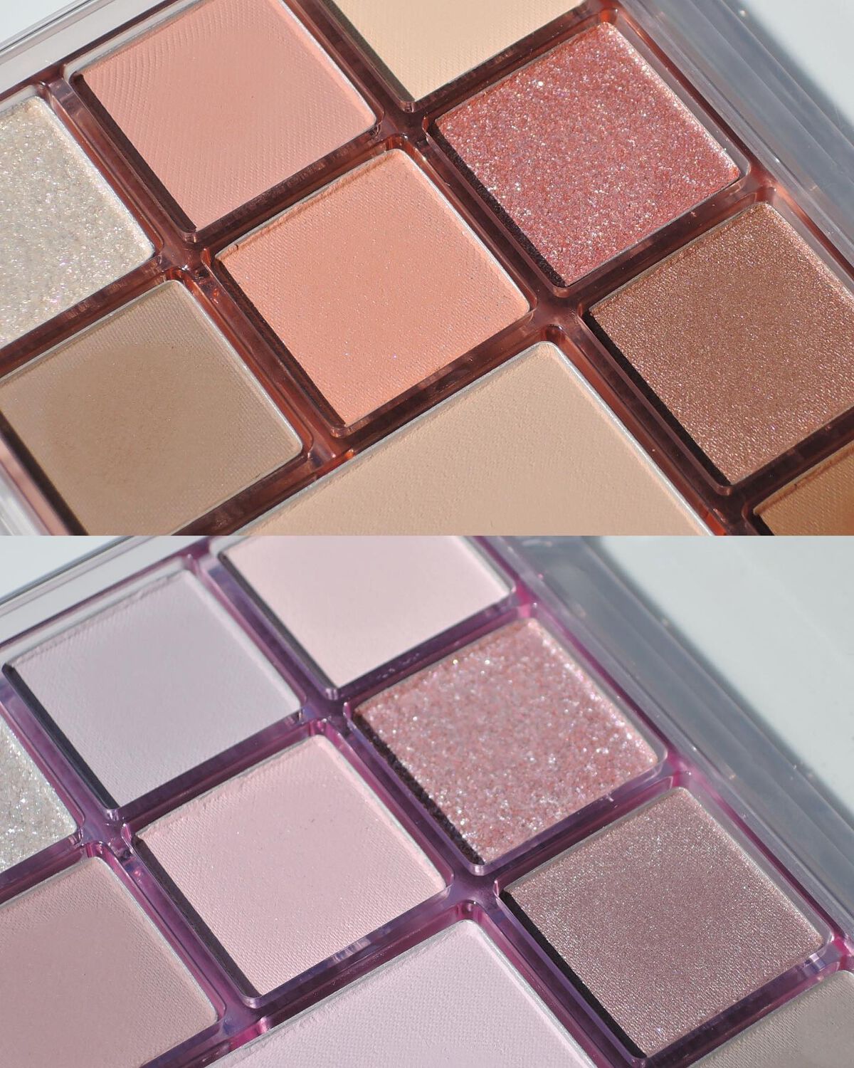かなり淡い発色でラメ感も細かめ。左下がラメ系のパレットになっており02のみ右下のチークカラーもパール入りです。 白みたっぷりの淡いカラーなので01はライトスプリングに、02はライトサマーにおすすめだなと感じました( ^> ̫ < )👍🏻 ぽわんと柔らかな印象になるので気になる方はぜひ使ってみてください!