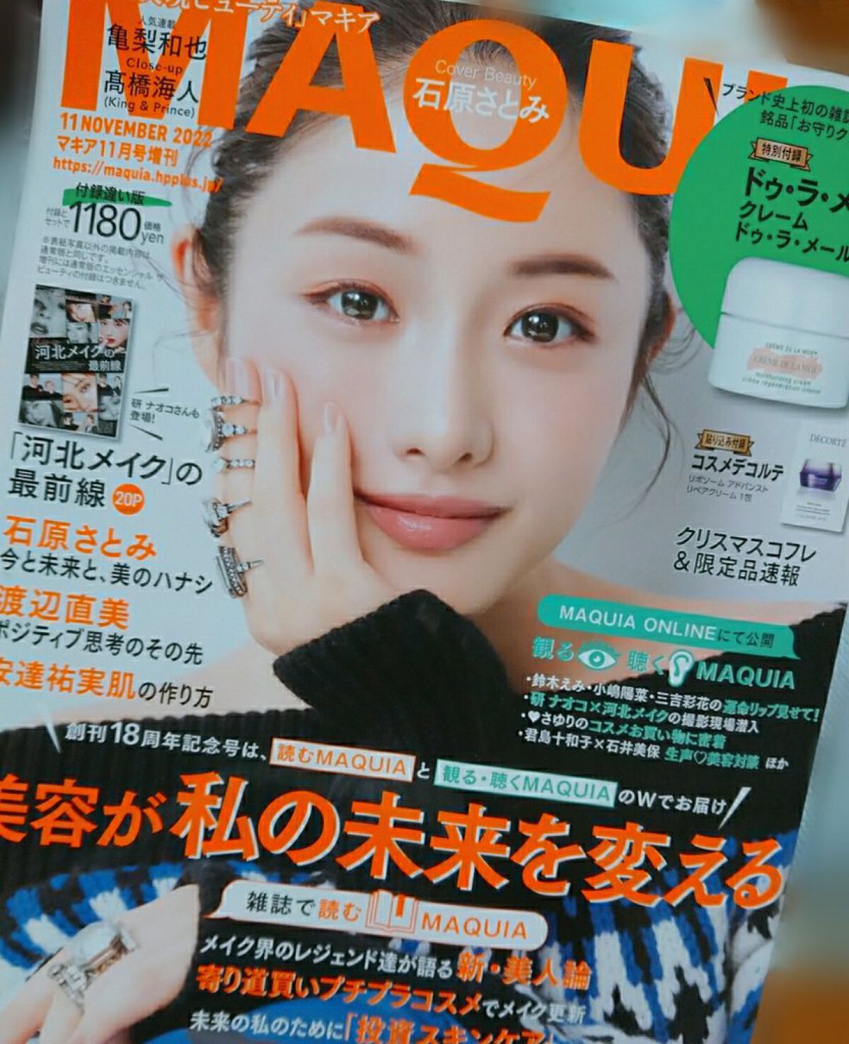 マキア11月号は「これからも私が主役の美容で行く!」というメッセージとともに届ける創刊20周年記念号です。 KANEBOのクリームインデイ!先月の付録で使ってみてめちゃくちゃ良くて♡ 旅行に持って行って使ったんだけど香りにも癒される。 どれもパウチサンプルじゃなくてミニボトルなのが嬉しい!