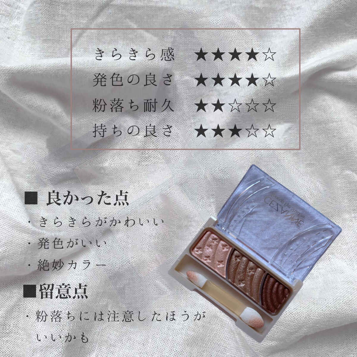 | アイシャドウパレットランキング第3位 | 粉質がふわっとなめらかになり発色もしっかりめになった! | 詳細を見る | |